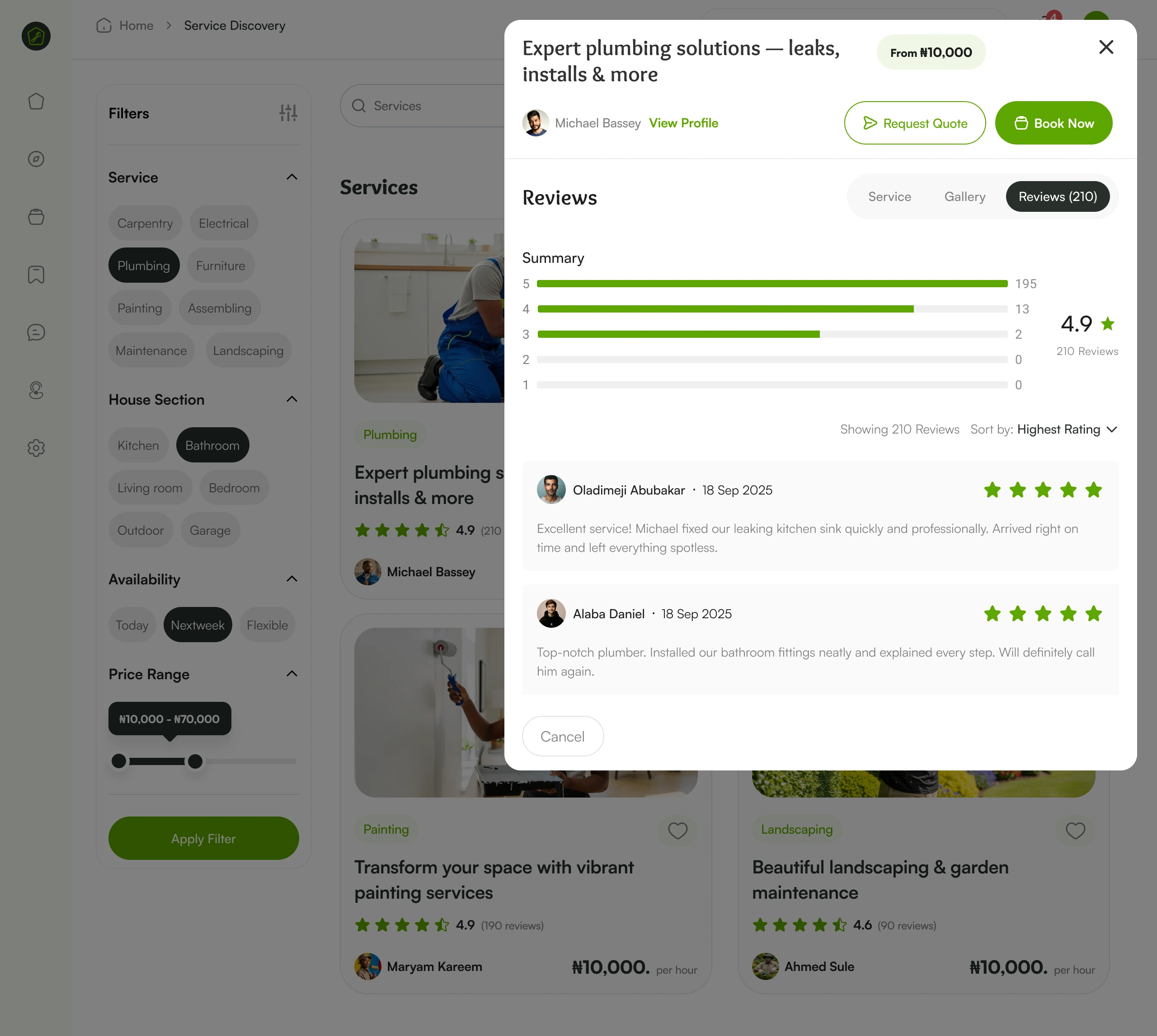 Every decision, from “Nearest to You” sorting to the chat-first quoting flow, was built to reduce uncertainty, speed up bookings, and empower both customers and handymen.