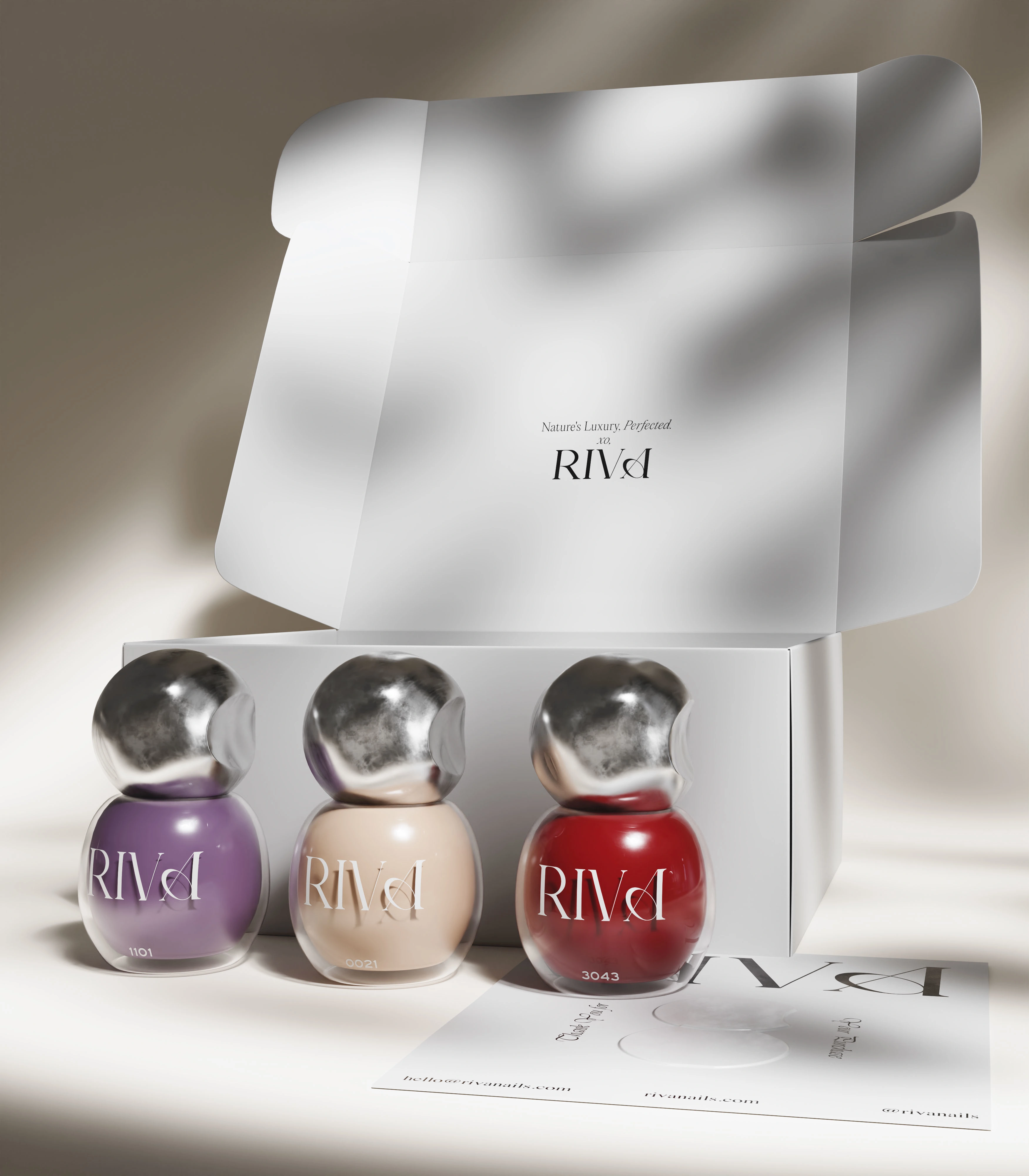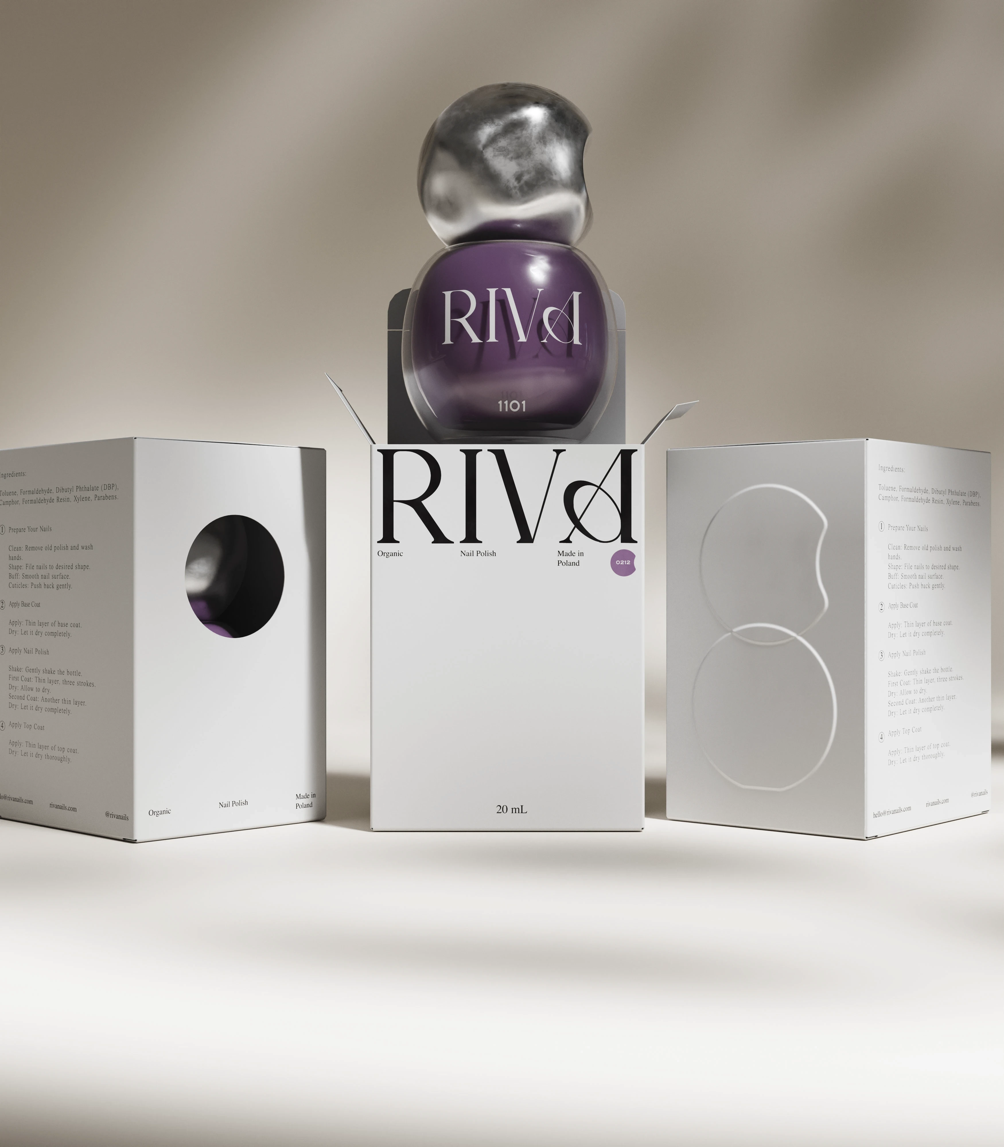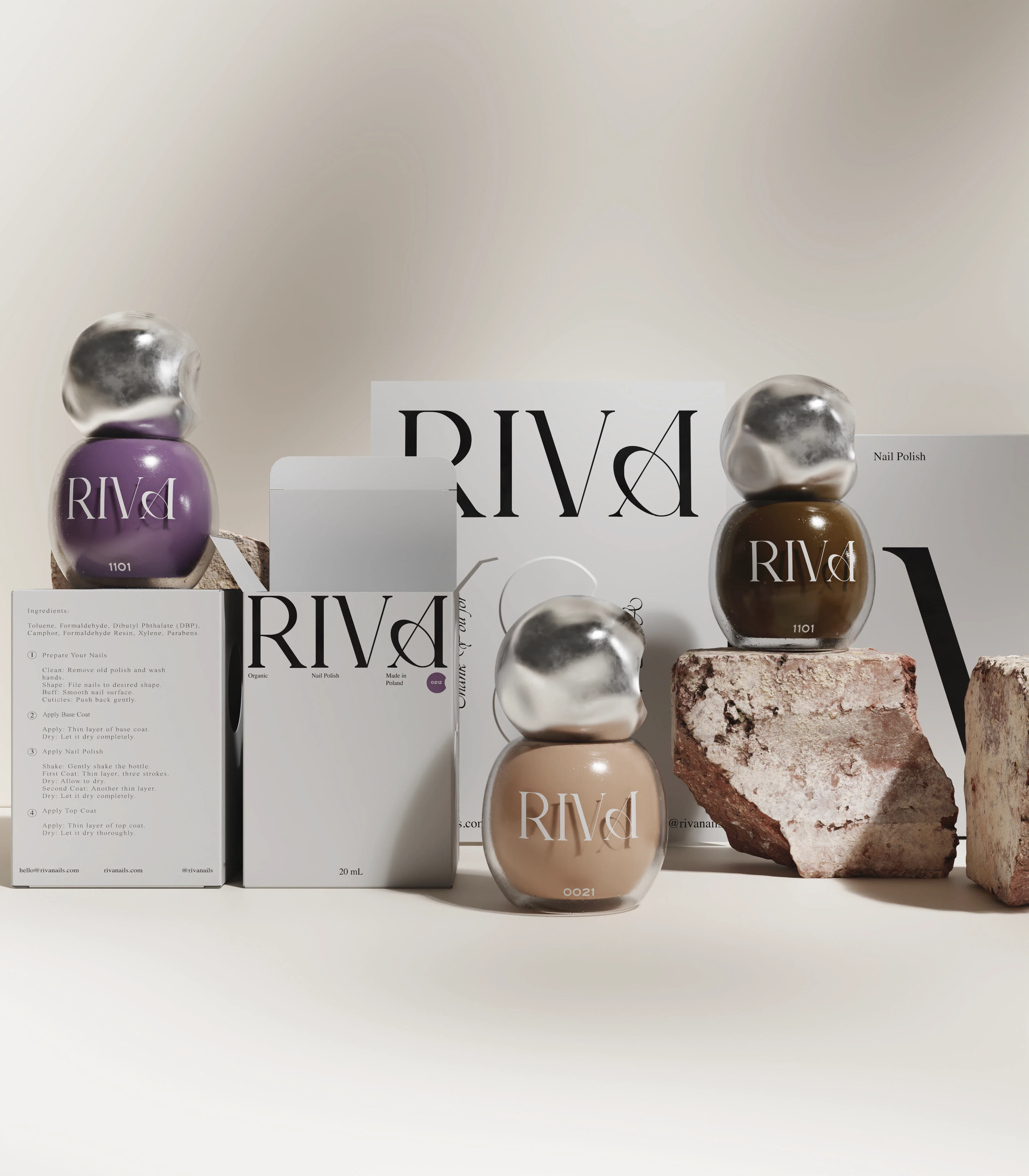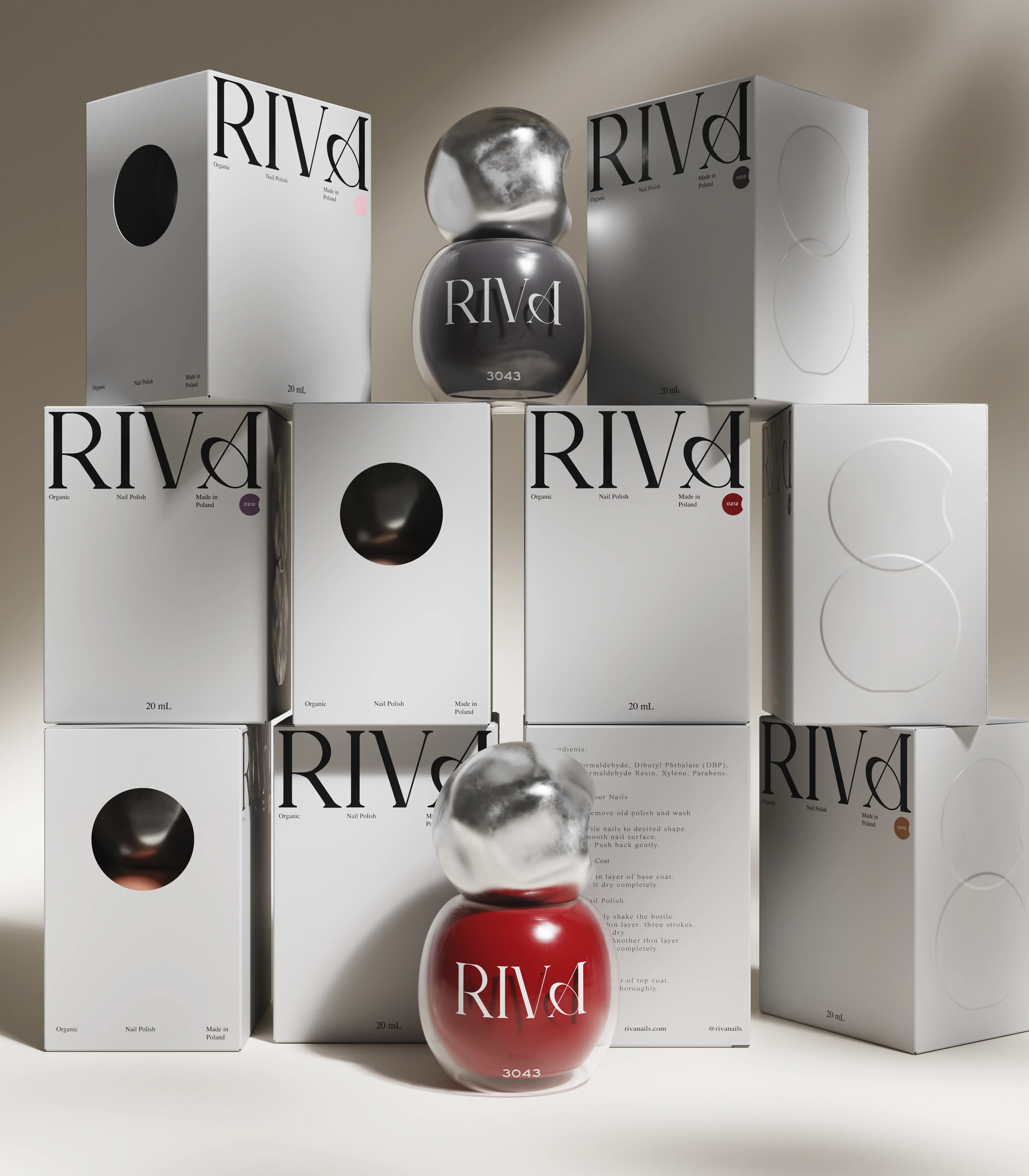 RIVA is a Scandinavian nail polish brand. For this project, I developed 3D product visualizations designed to capture the elegance of Nordic aesthetics.