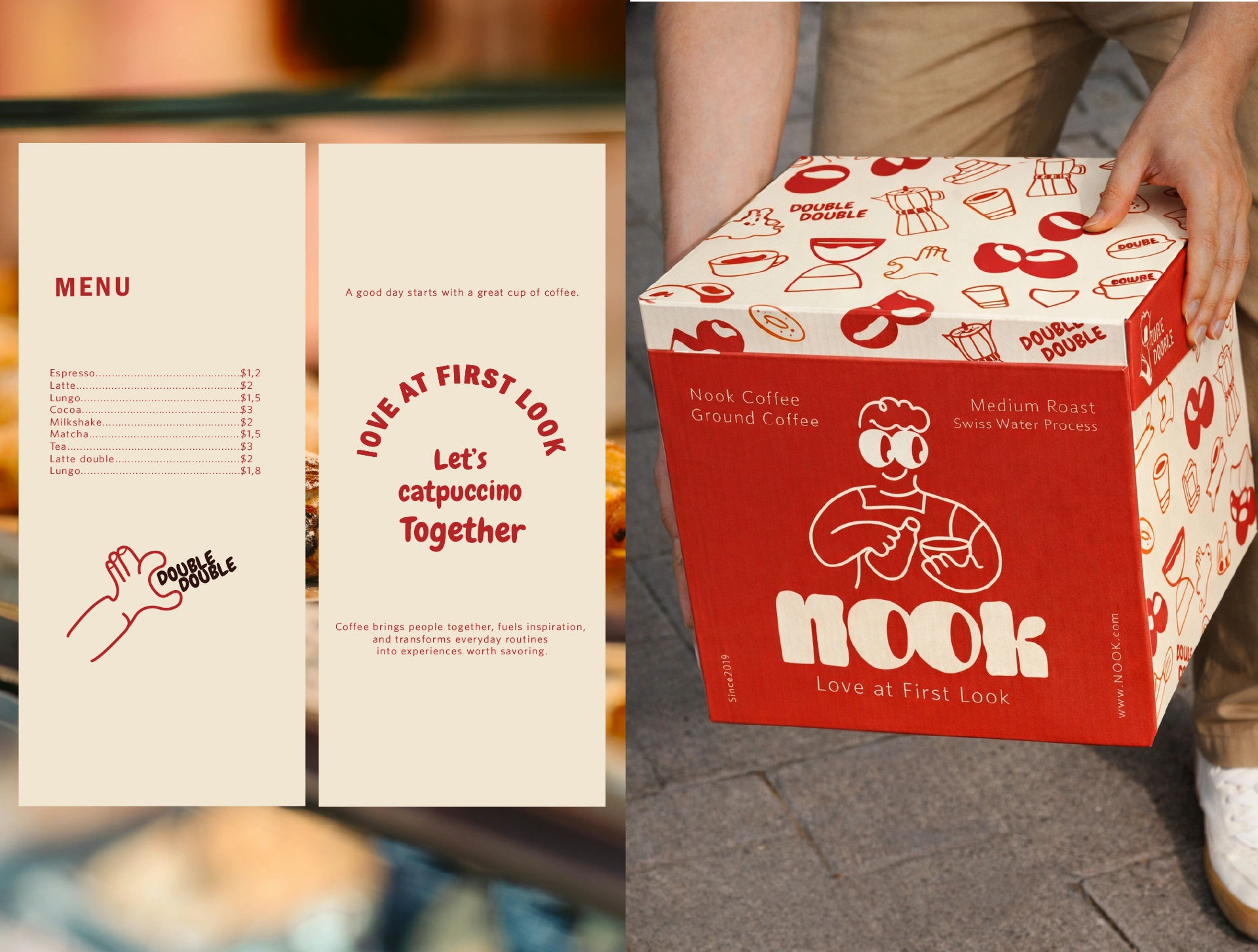 In today’s crowded coffee scene, many cafés struggle to build a recognizable identity. Some rely on safe, familiar visuals, while others focus on aesthetics without creating a real sense of connection. For Nook Coffee, the challenge was to craft a brand that immediately captures attention while still feeling warm, approachable, and human.