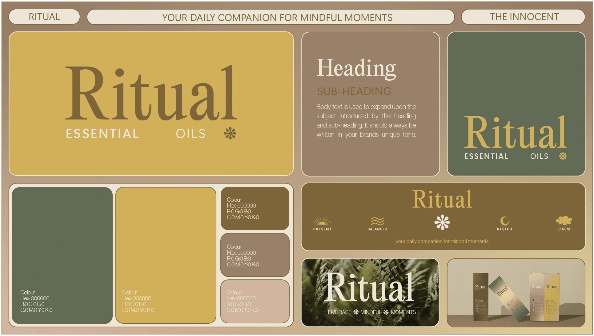 Ritual Essential Oils is a small business, empowering customers to create space for daily mindful moments. Deliverables: brand strategy, visuals, & packaging.