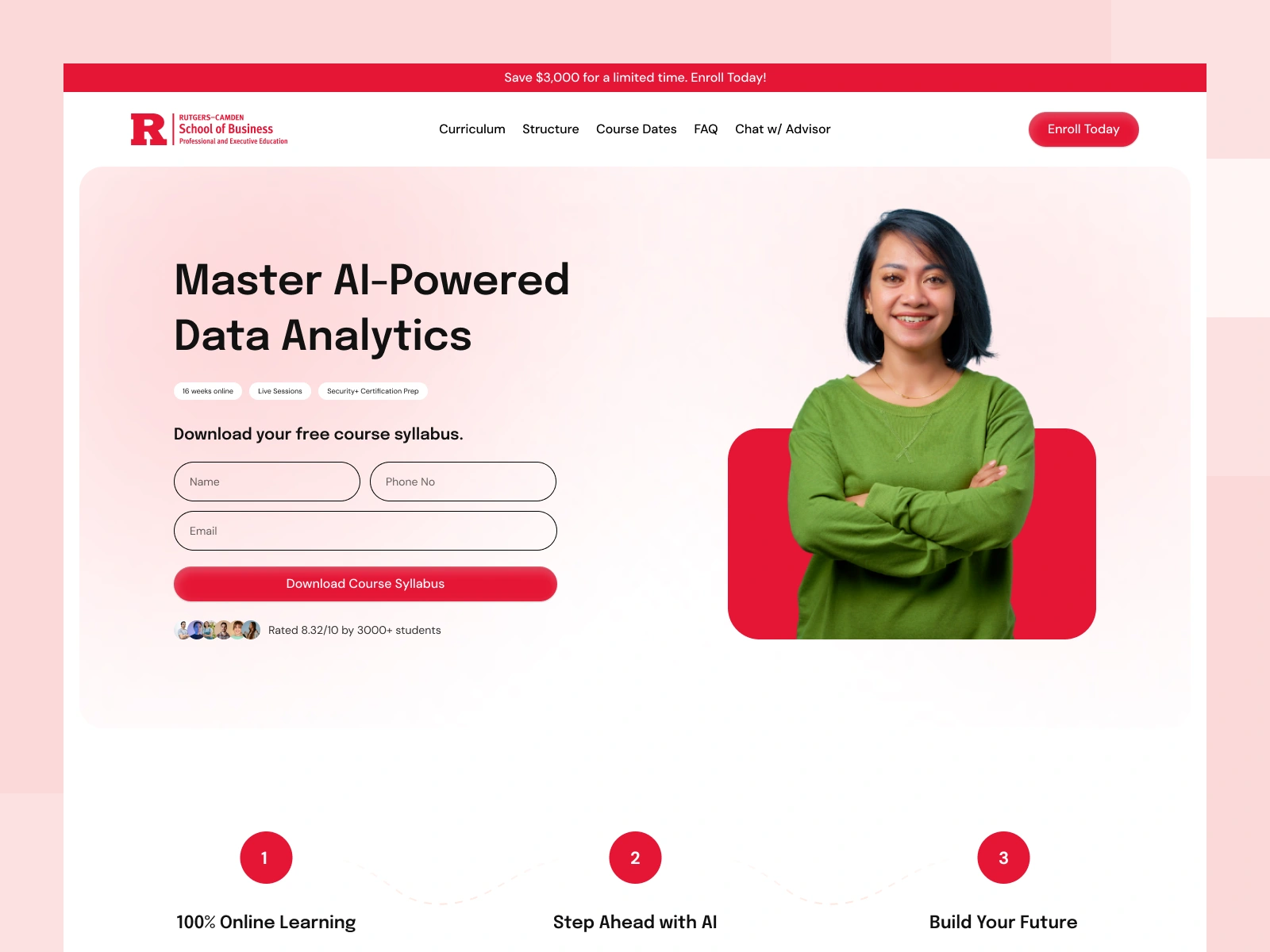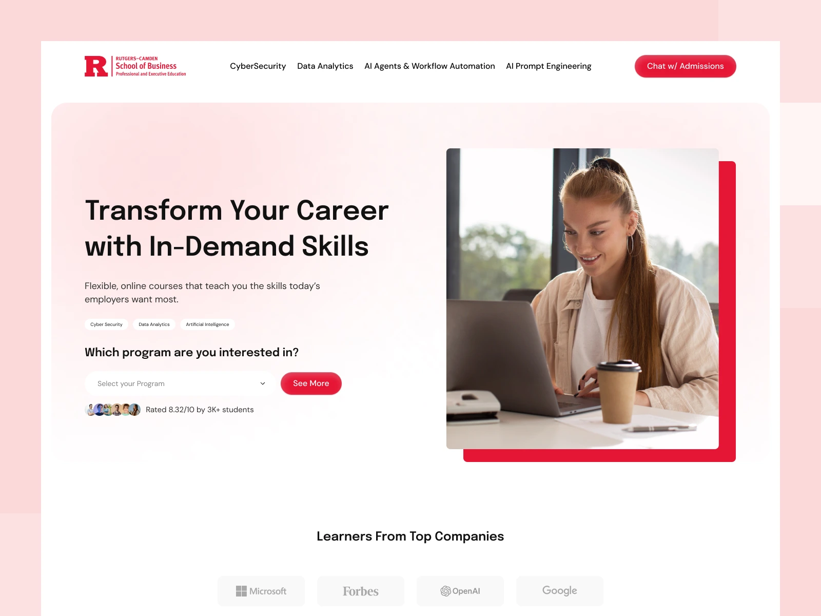 Designed and developed a modern EdTech website for Rutgers Business School using Figma and HubSpot CMS to support enrollment and program discovery.
