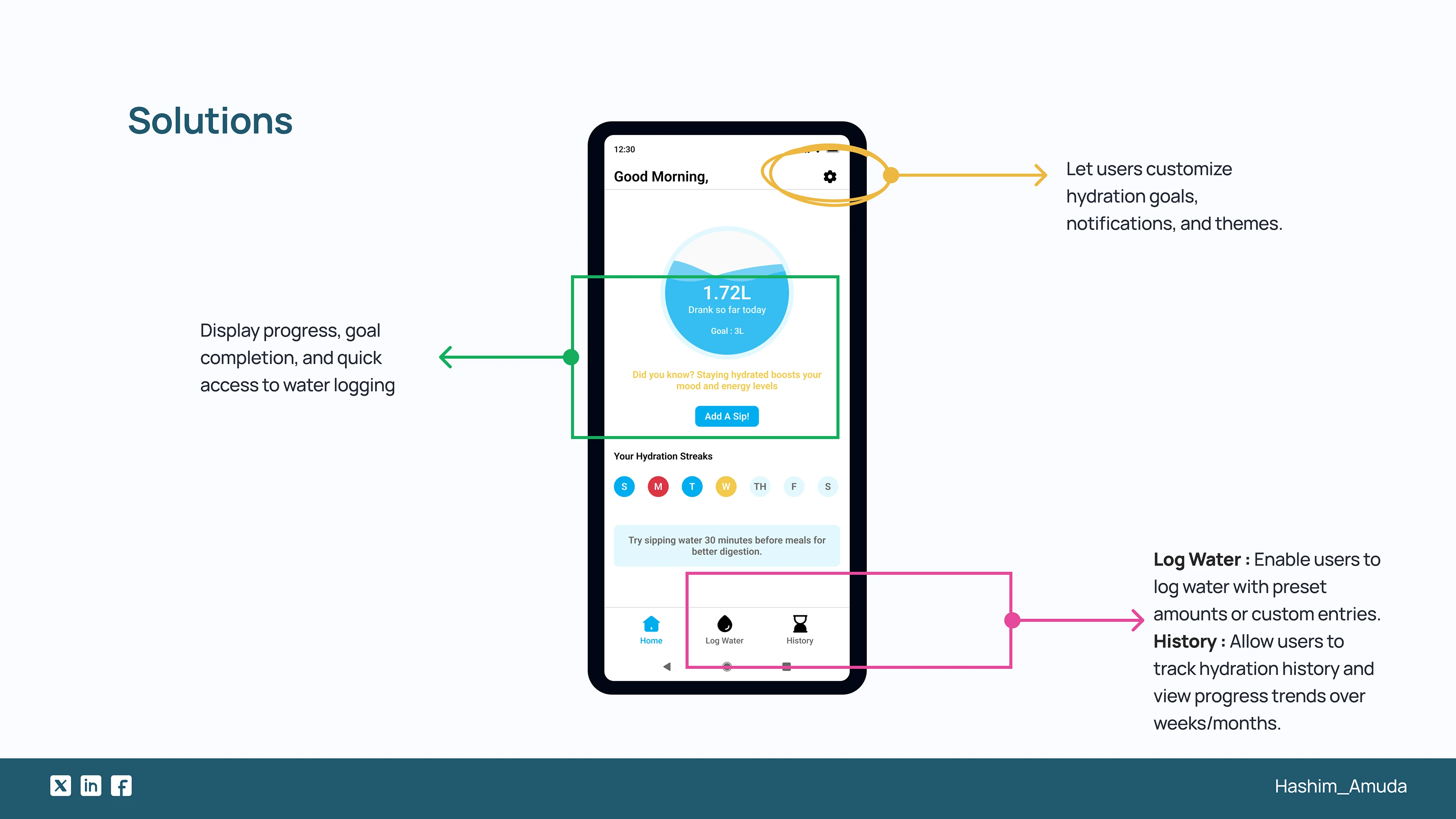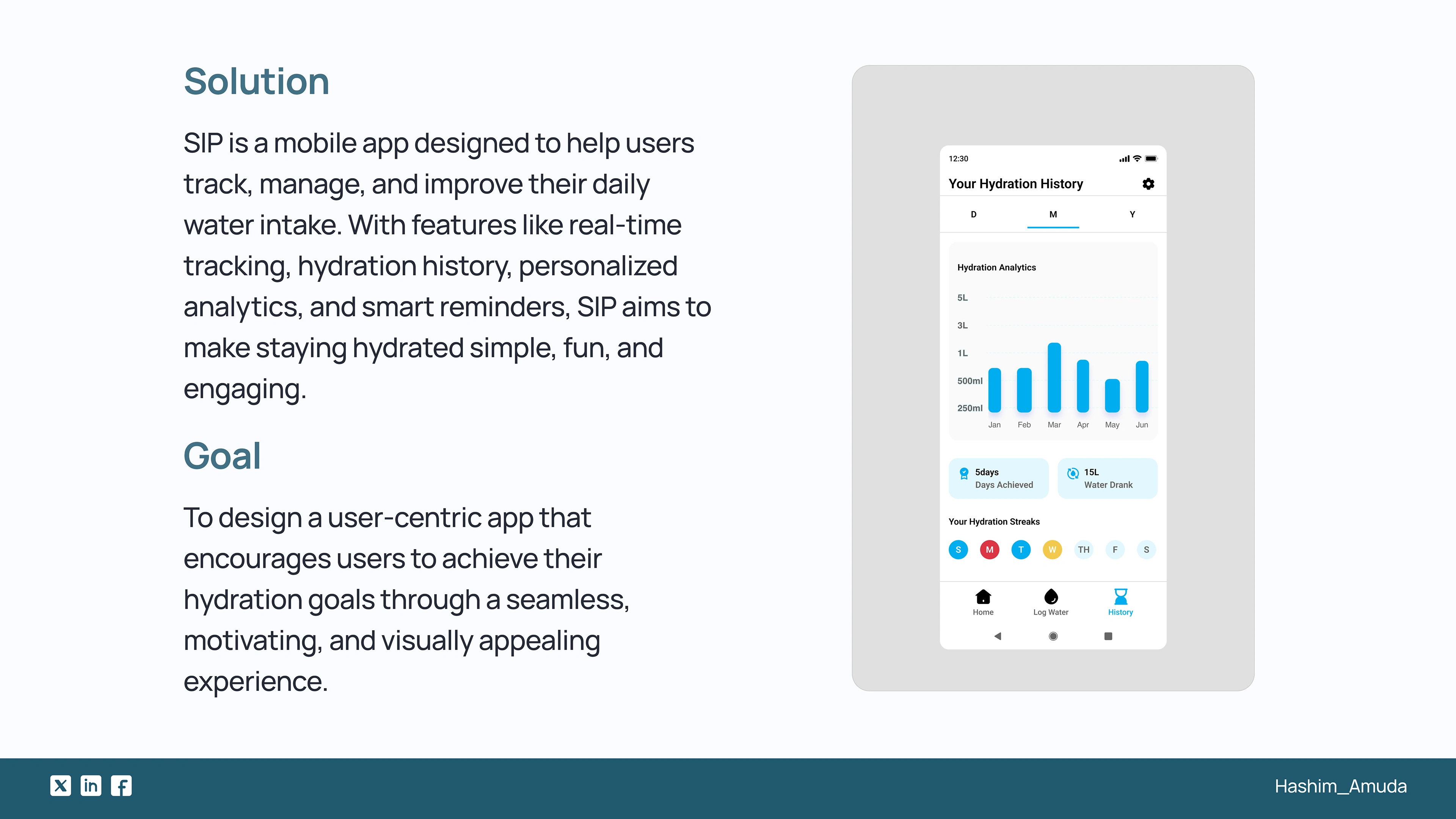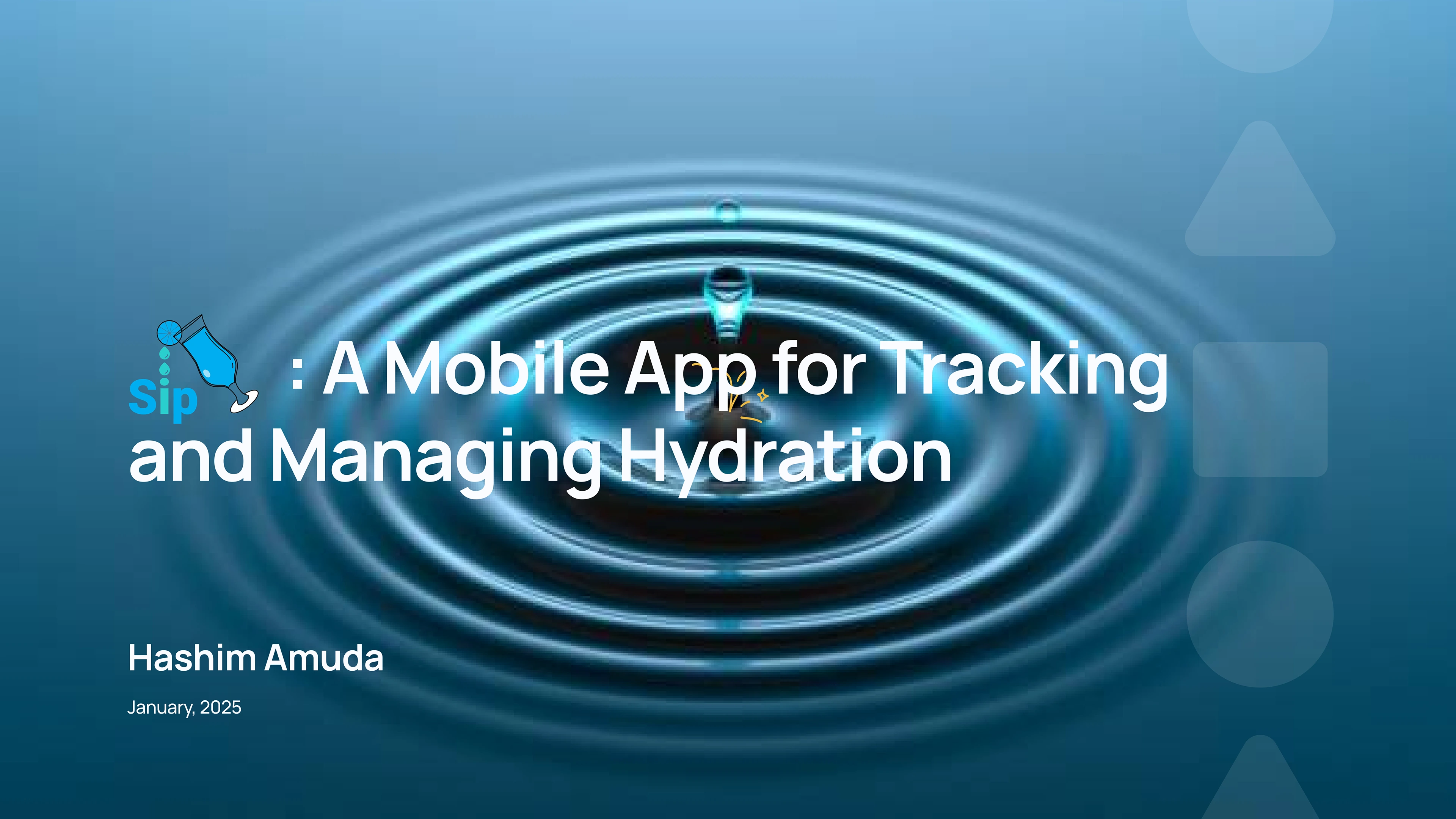 SIP is a hydration tracking app designed to help users stay hydrated with smart reminders, analytics, and a seamless logging experience.