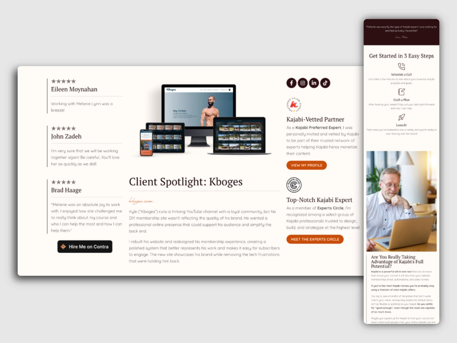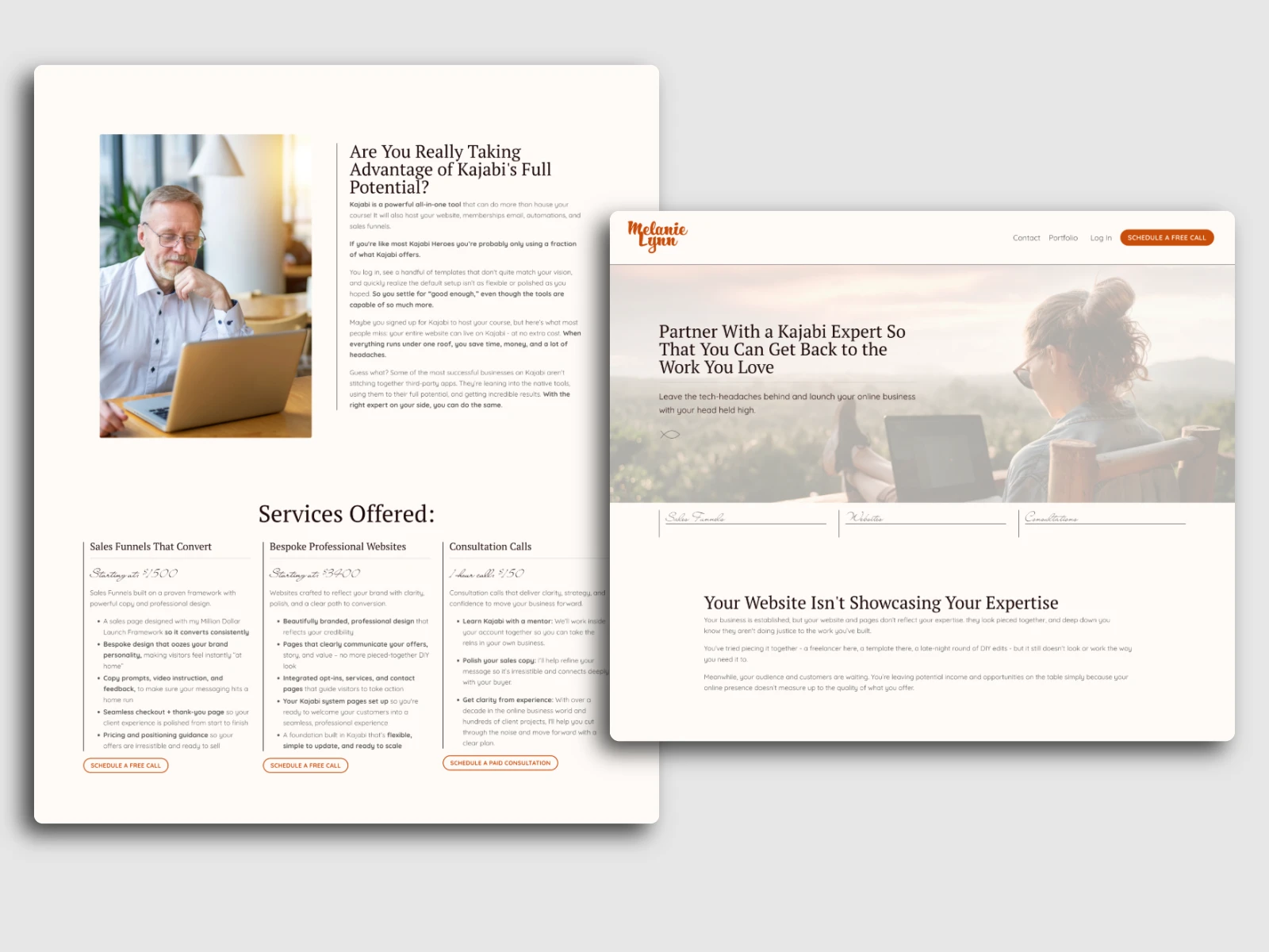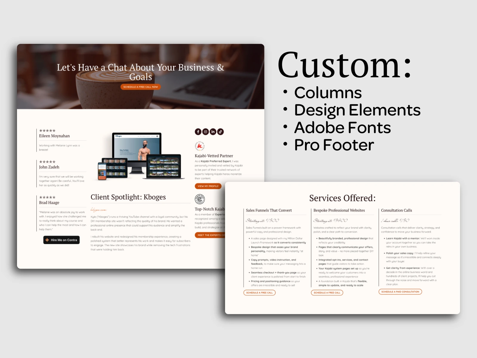 Rebranded my Kajabi website with a high-end, minimalist design using custom code, Adobe fonts, and a Pro template to launch a polished new online home.