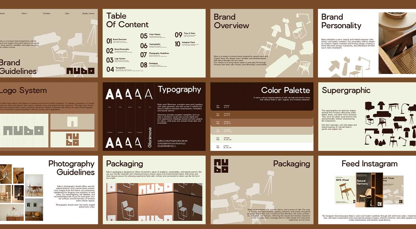 NUBO’s identity is designed to support the brand’s positioning as a modern furniture label that prioritizes comfort, simplicity, and everyday usability.