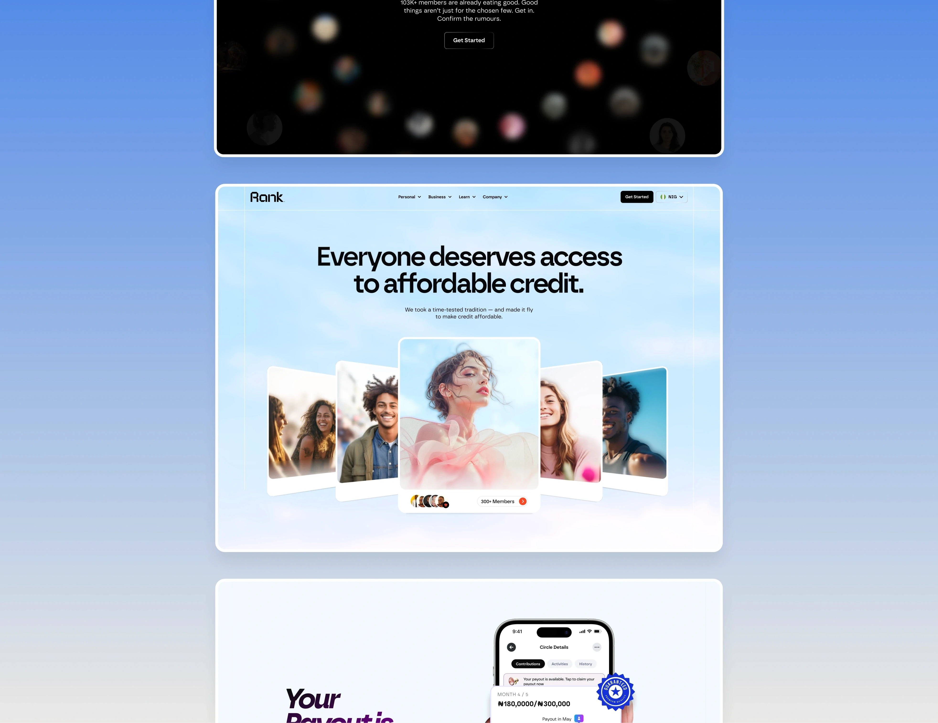 Key product features such as KYC tiers, savings circles, and diaspora-focused services were either unclear or buried, making it difficult for new users to quickly understand Rank’s value. Additionally, the site did not sufficiently address concerns around security, compliance, or legitimacy, which are critical decision factors in regulated financial markets.