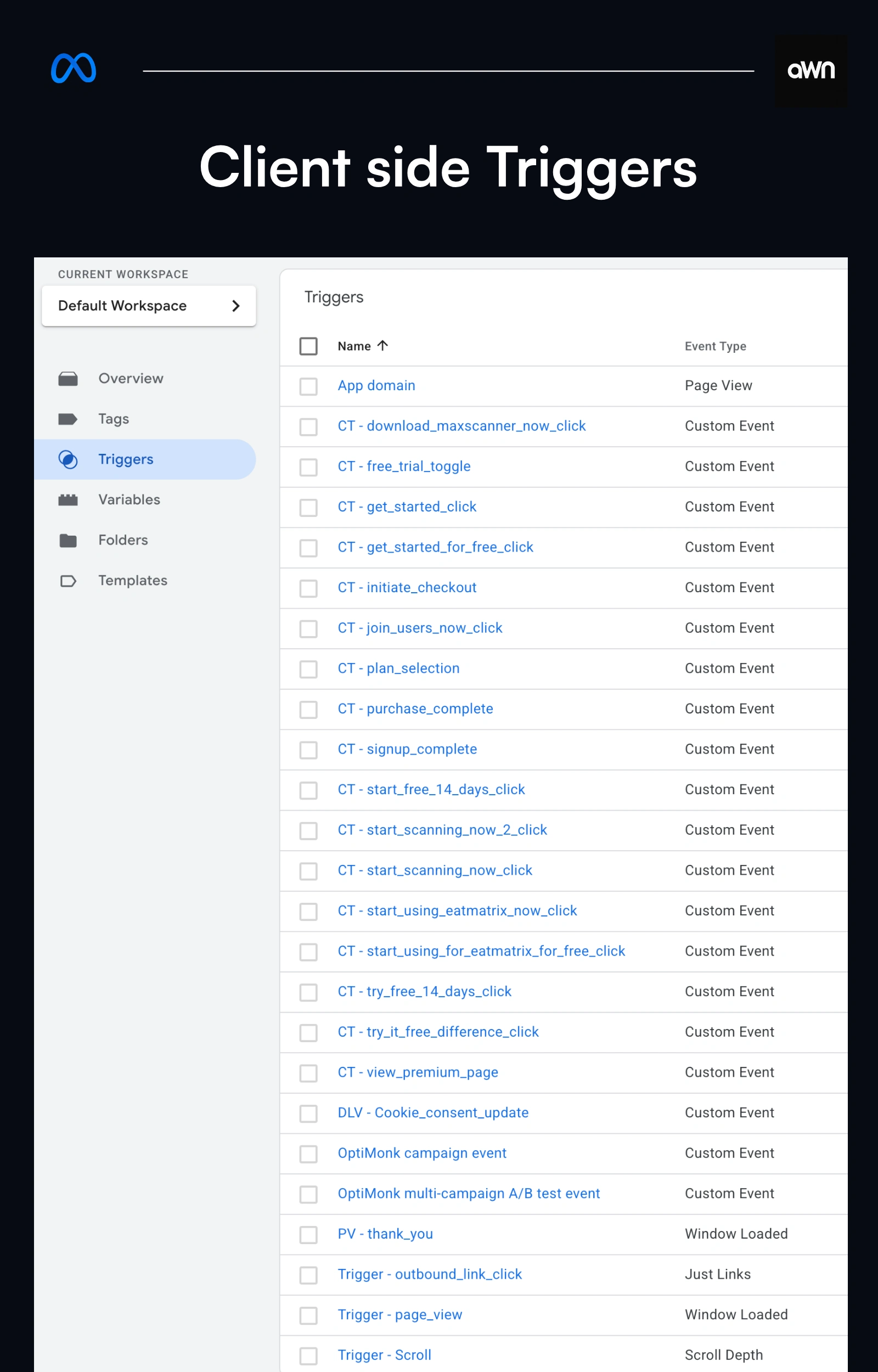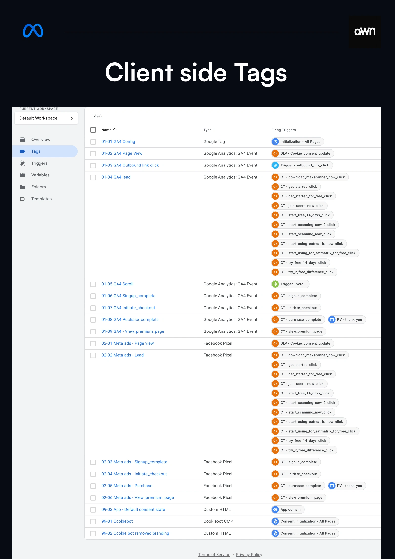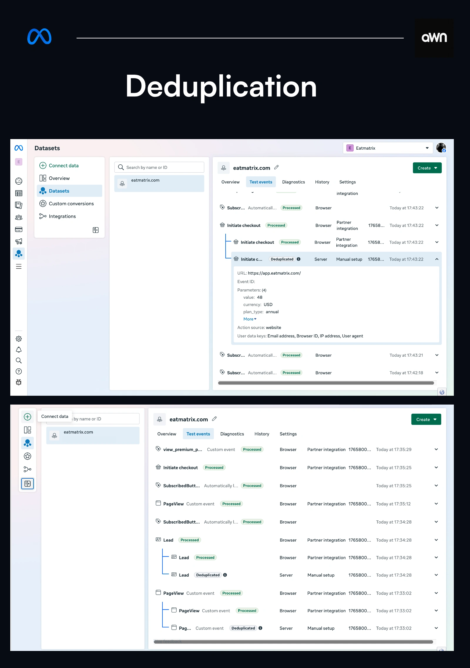 www.eatmatrix.com)app.eatmatrix.com)d.eatmatrix.com via Stape)signup_completeview_premium_pageplan_selectionfree_trial_toggleinitiate_checkoutpurchase_completesignup_completeview_premium_pageinitiate_checkoutpurchase_completeplan_typecurrencyvaluefree_trial_enabledemail (hashed where applicable)event_id (critical for deduplication)