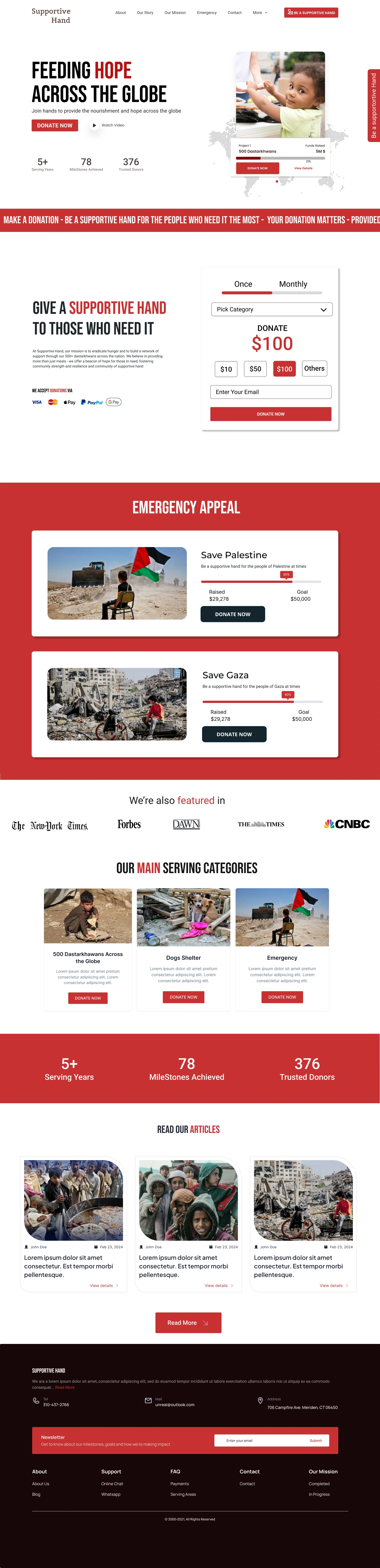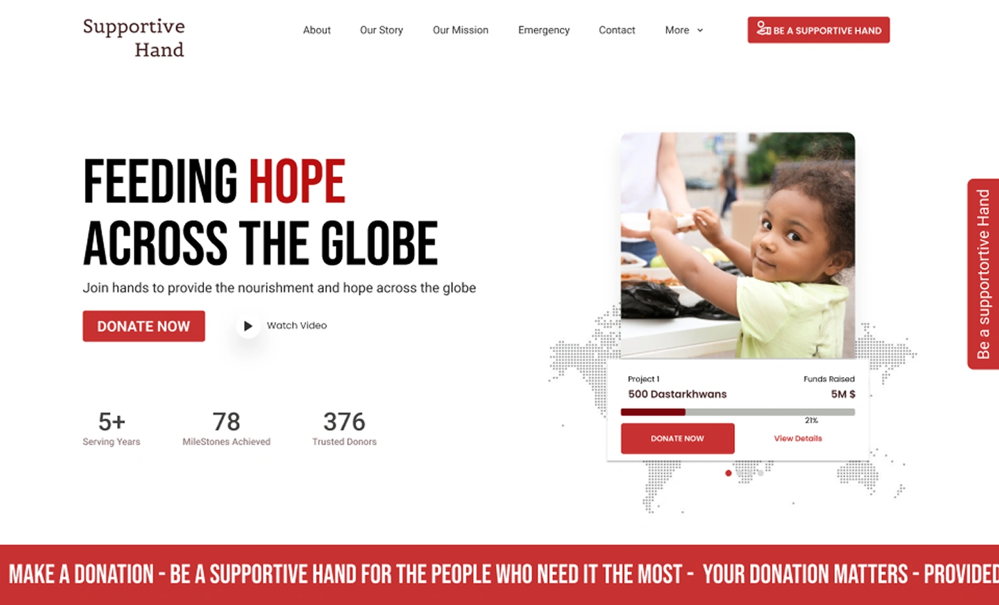 Supportive Hand is a global nonprofit organization aiming to provide food, shelter, and emergency aid to those in need. The goal of this project was to redesign their outdated website into a modern, emotionally impactful, and conversion-focused donation platform.