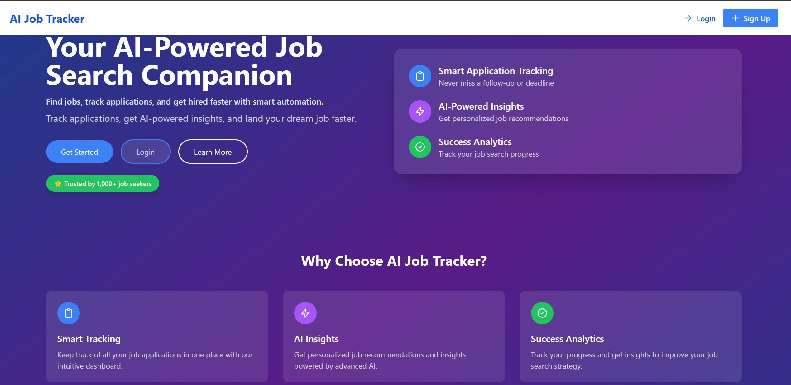 AI Job Tracker revolutionizes the job search process by combining intelligent automation, personalized insights, and seamless application management. Designed for modern job seekers, this platform helps users track applications, receive AI-driven recommendations, and optimize their job hunt with data-driven analytics.