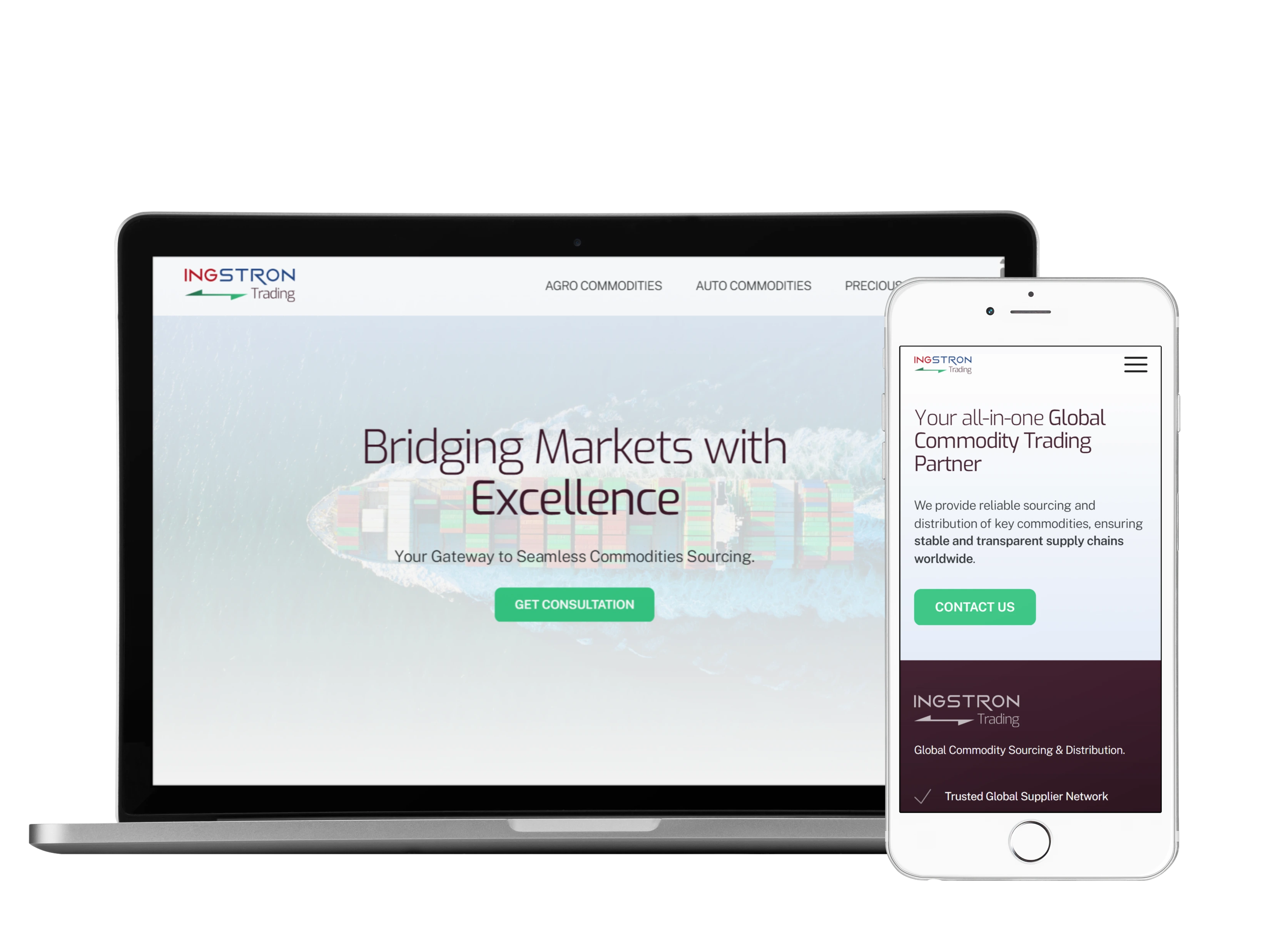 For Ingstron Trading, a global commodity sourcing and trading partner, I designed and developed a custom online presence using Framer, focusing on visual clarity and a modern, professional layout, presented in an engaging, easy-to-navigate way that reinforces the company’s expertise and trustworthiness.