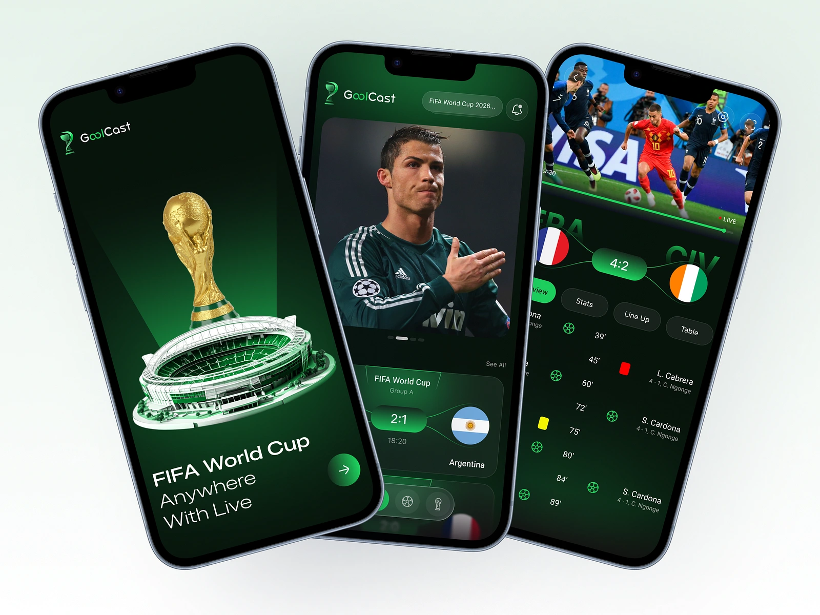The FIFA World Cup 2026 β GoalCast is your all-in-one spot to catch every moment live. Live streaming, real-time scores, group tables, match highlights, and that pure stadium energy β all wrapped in a dark green vibe that feels like you're right there in the crowd.