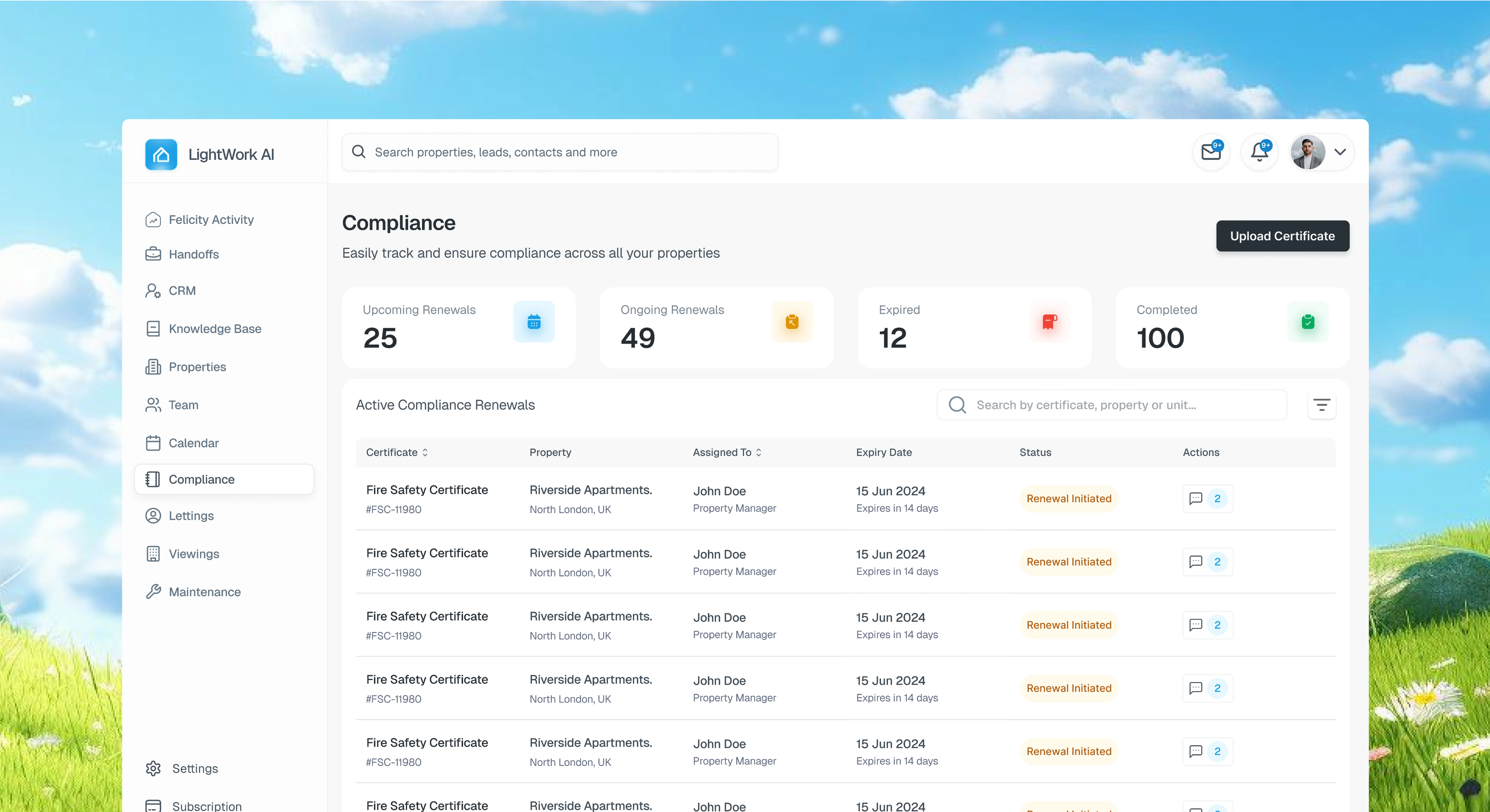 Lightwork AI compliance dashboard shots