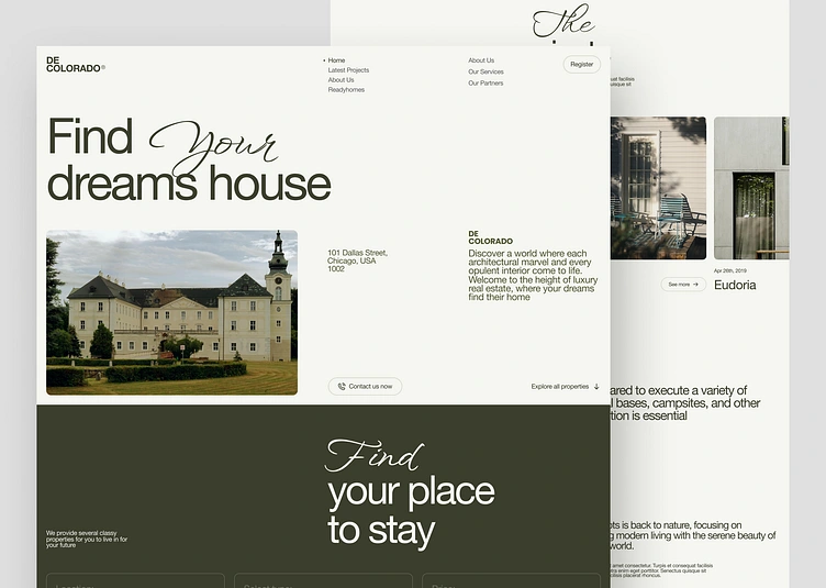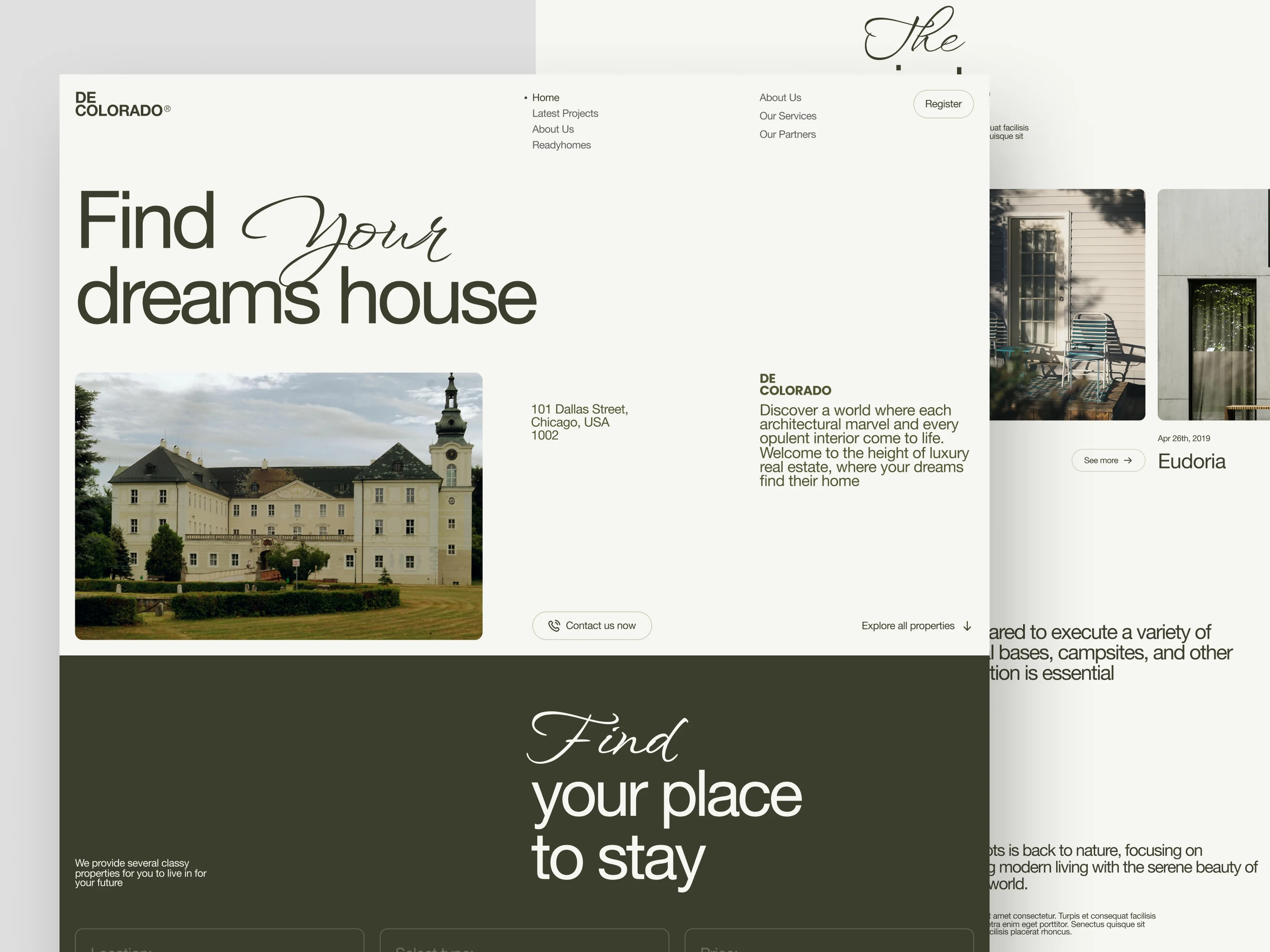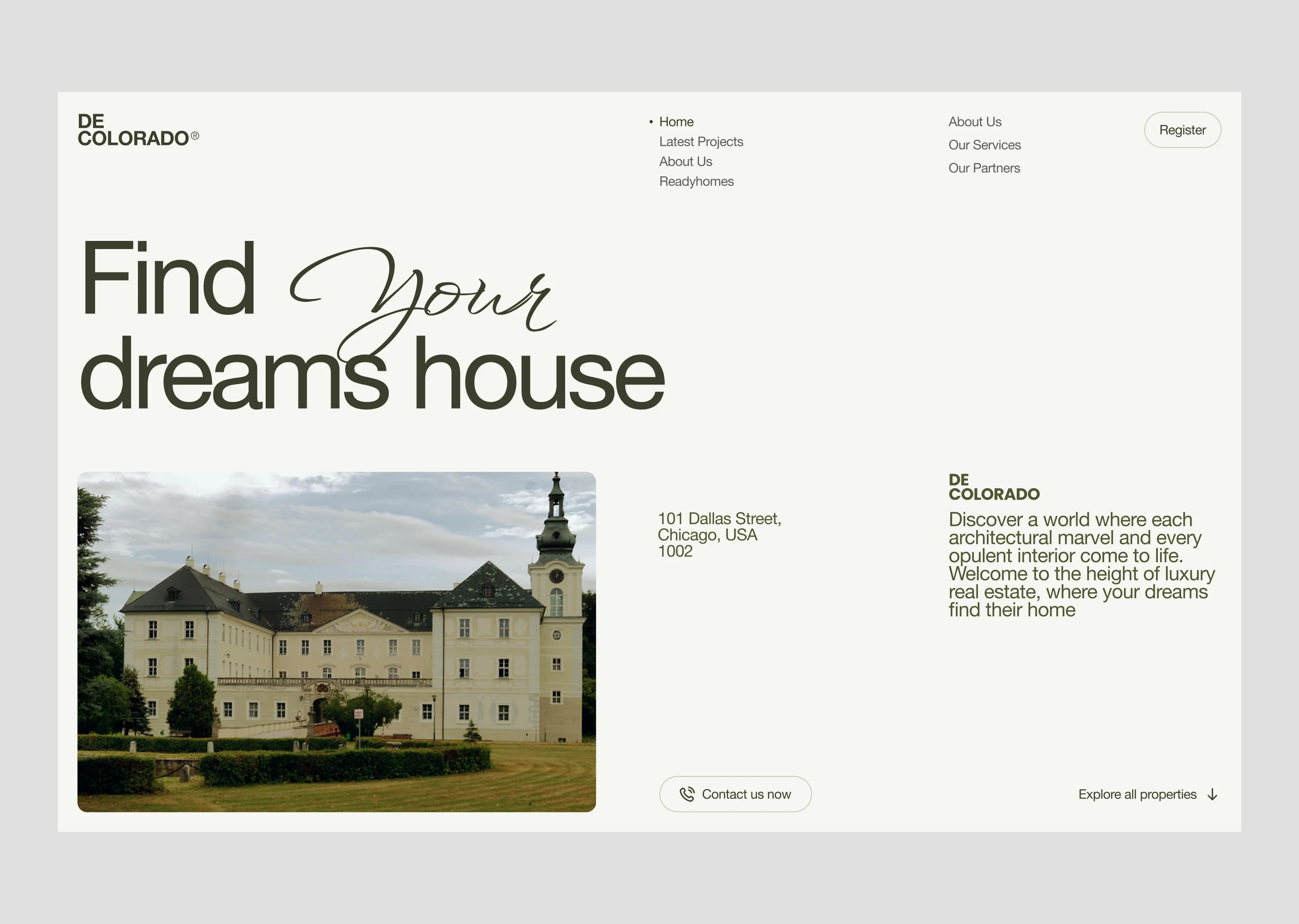 Hello, everyone! Here's my latest design exploration for a real estate agency called De Colorado, showcasing the layout section by section.