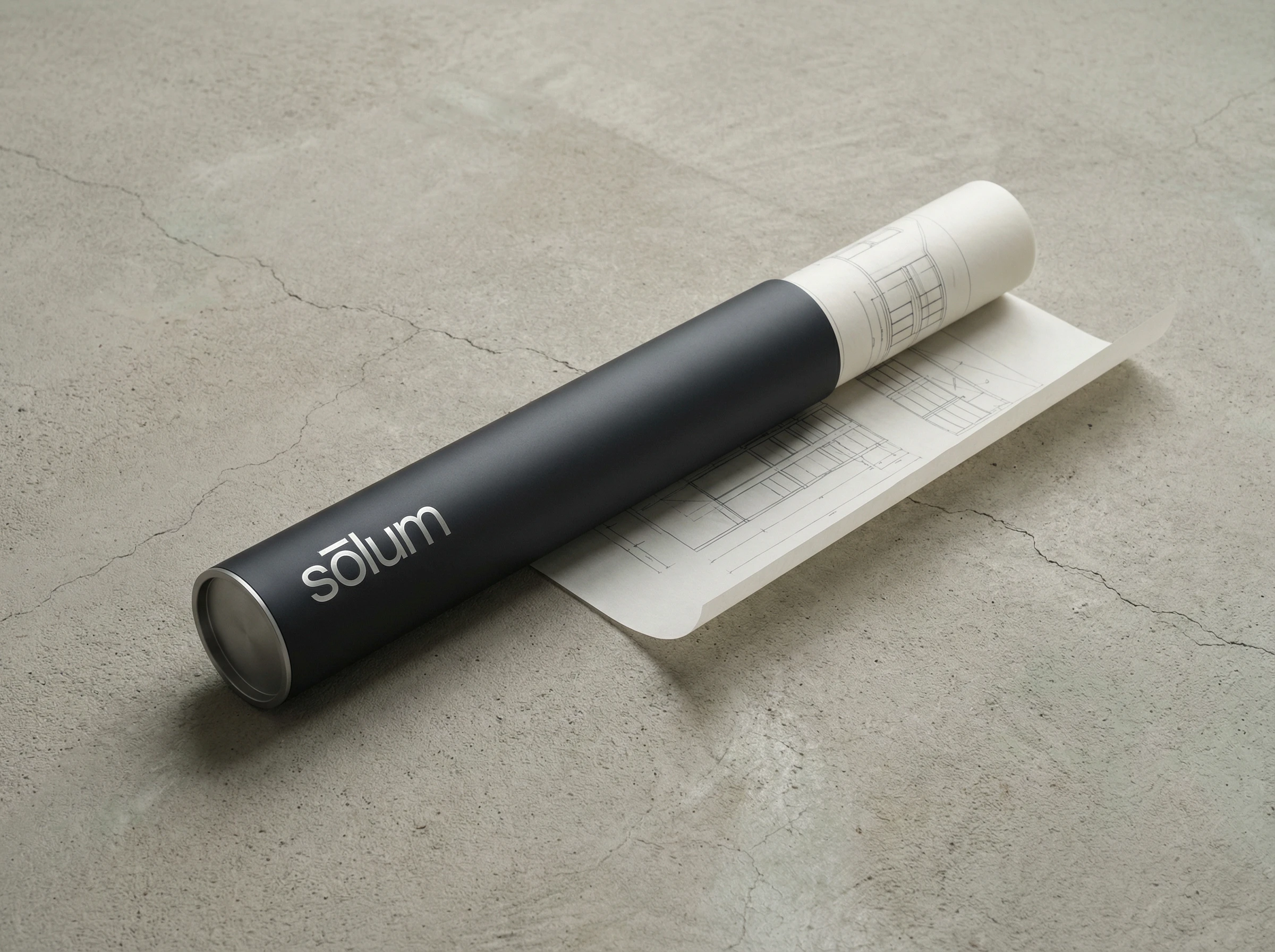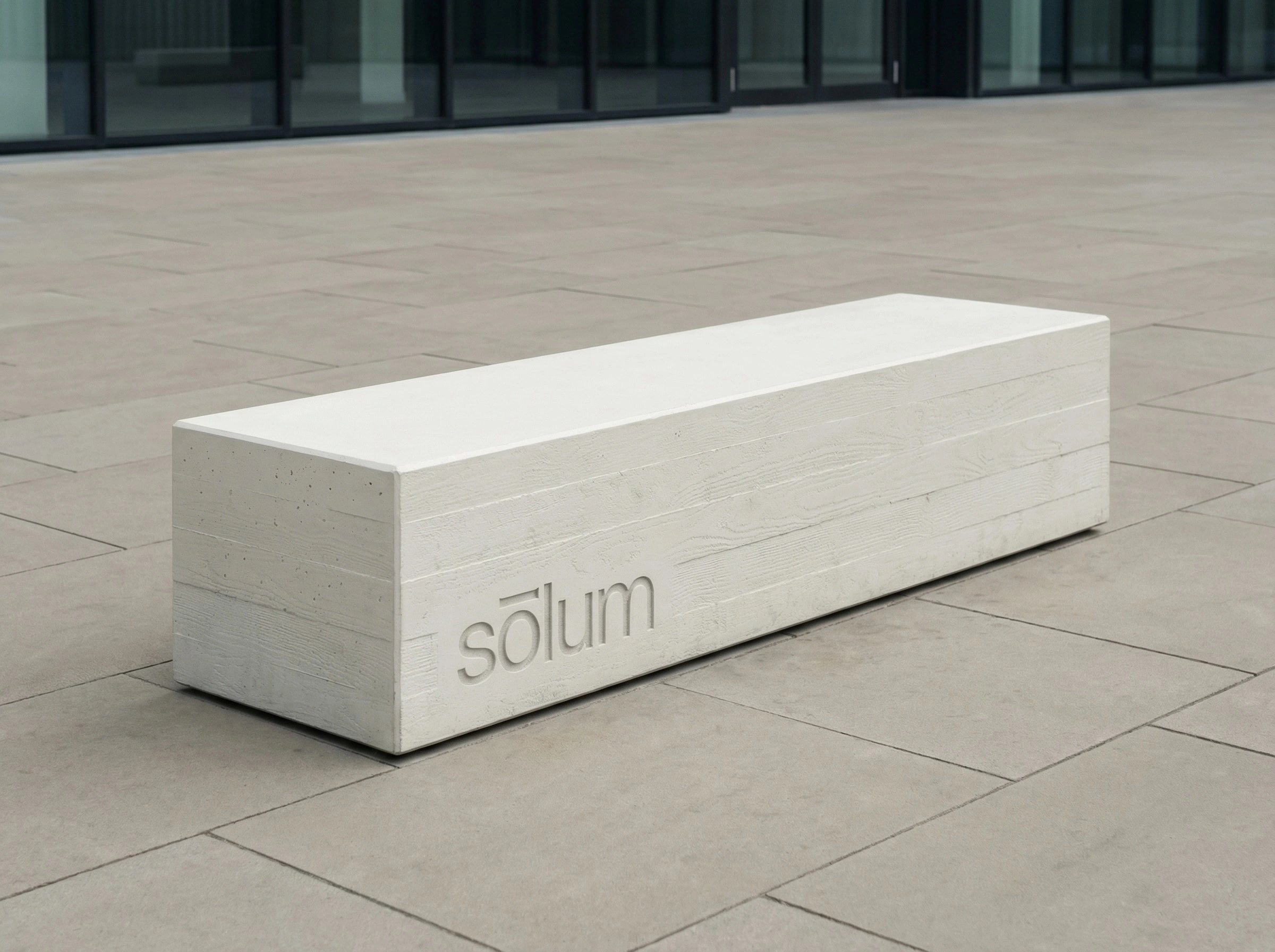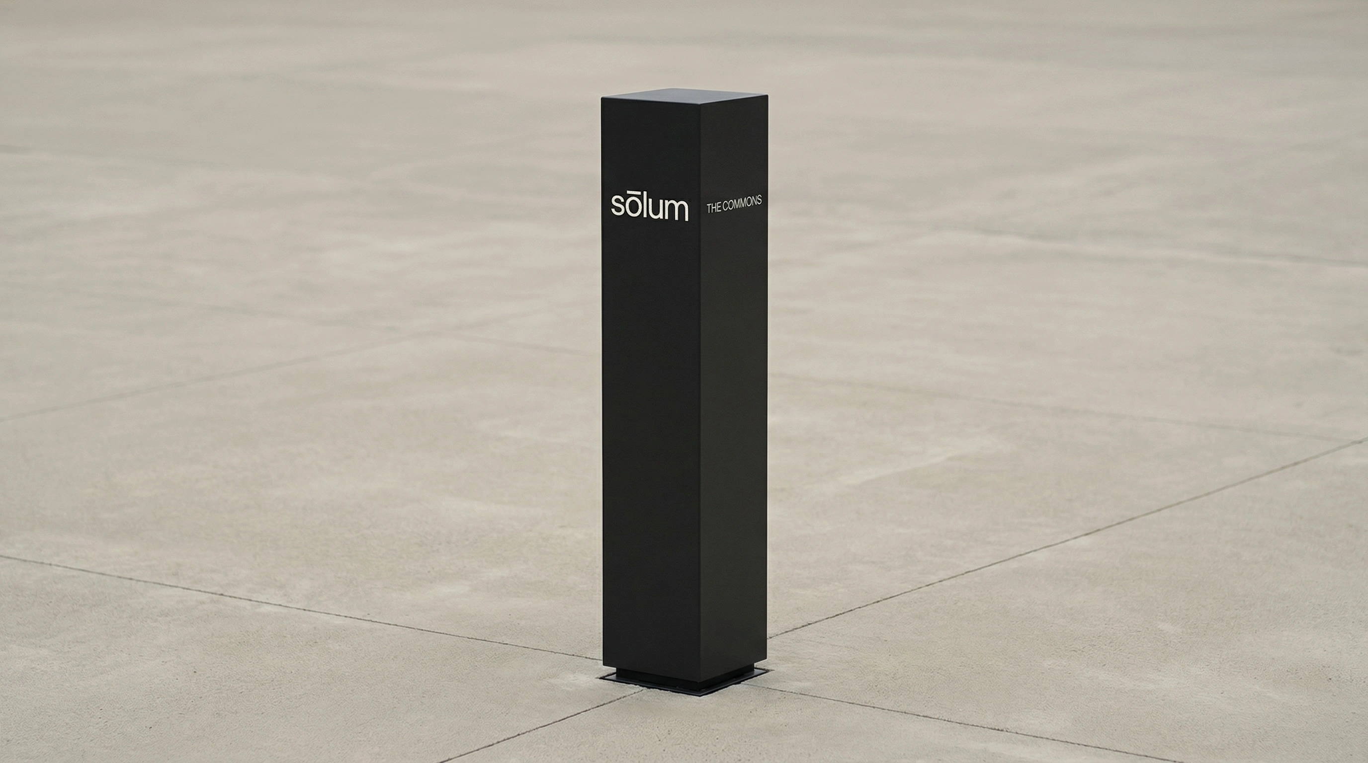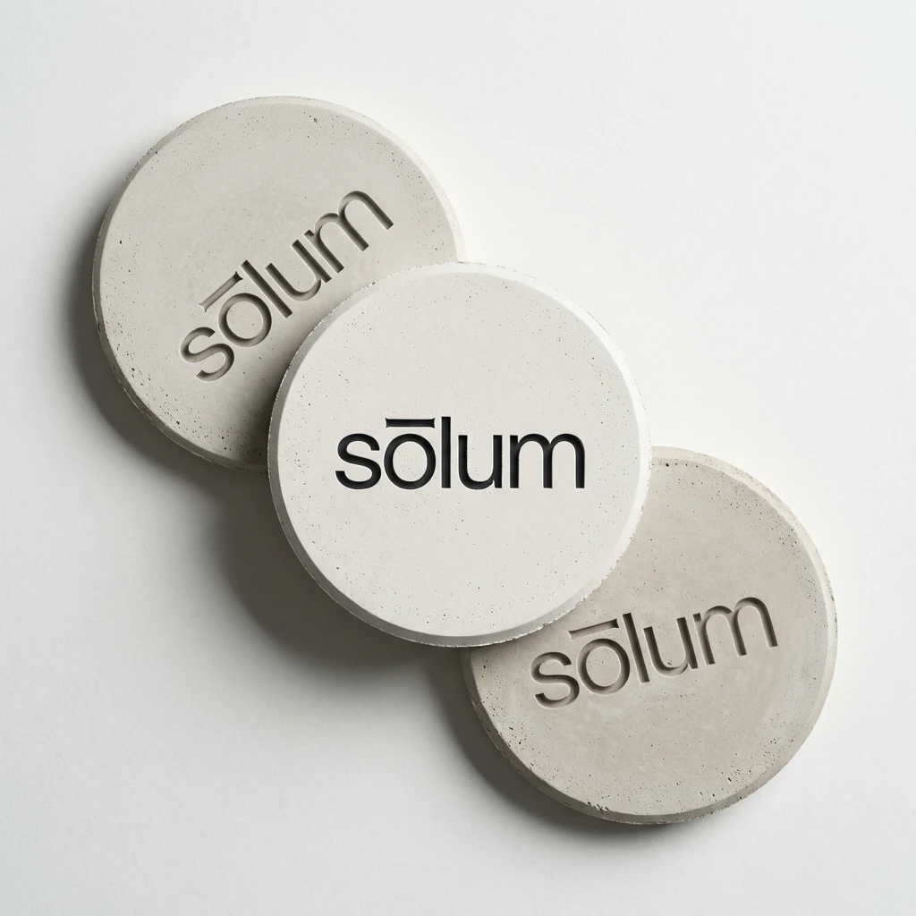 "sōlum" — set entirely lowercase, in a single weight of a geometric sans-serif. The macron above the ō is the only distinguishing mark in the system, and it does more work than any decorative element could. Slightly extended beyond the letter's natural width on both sides, it functions simultaneously as a diacritic, a horizontal rule, a datum line, and the brand's sole visual signature. At small sizes it reads as an accent. At large sizes it reads as architecture.