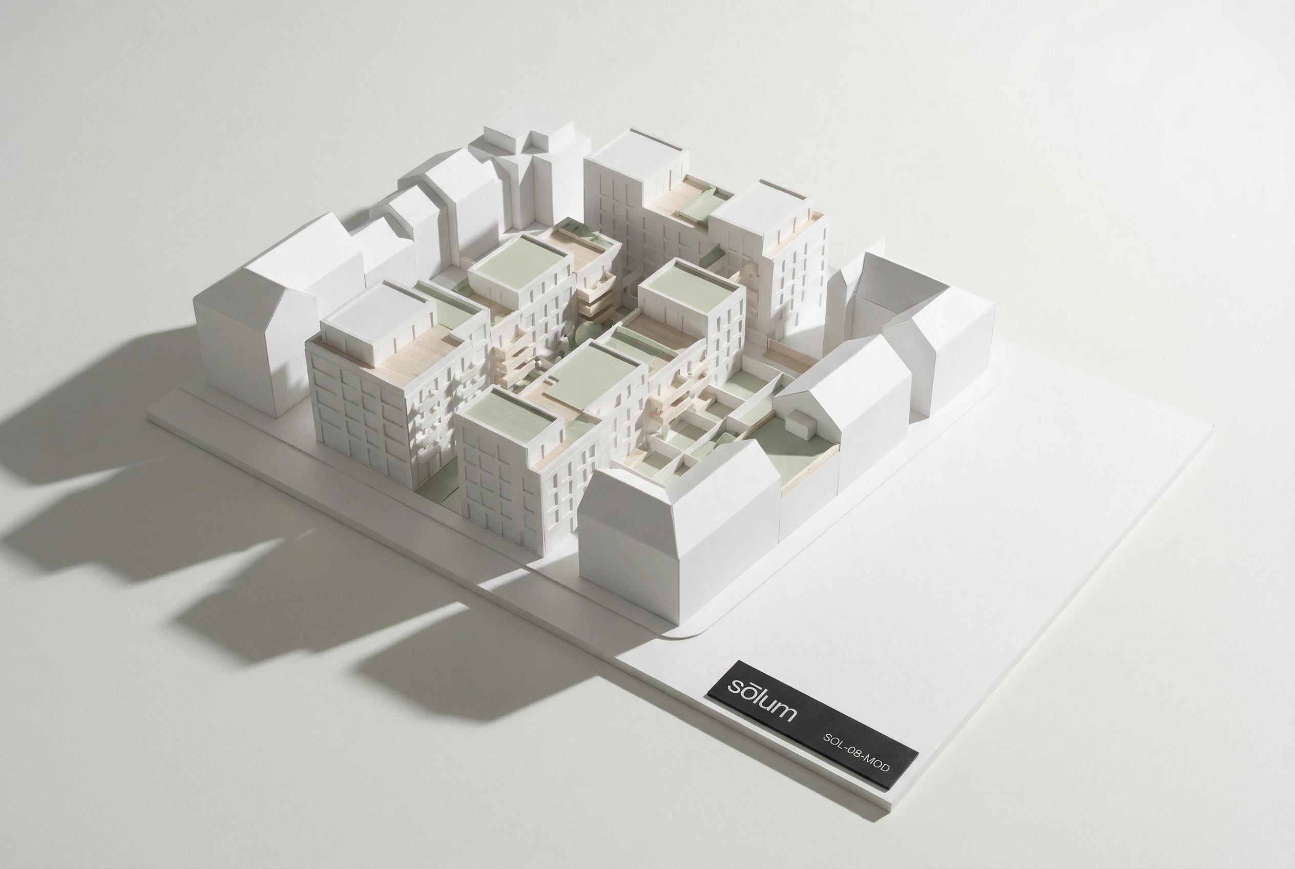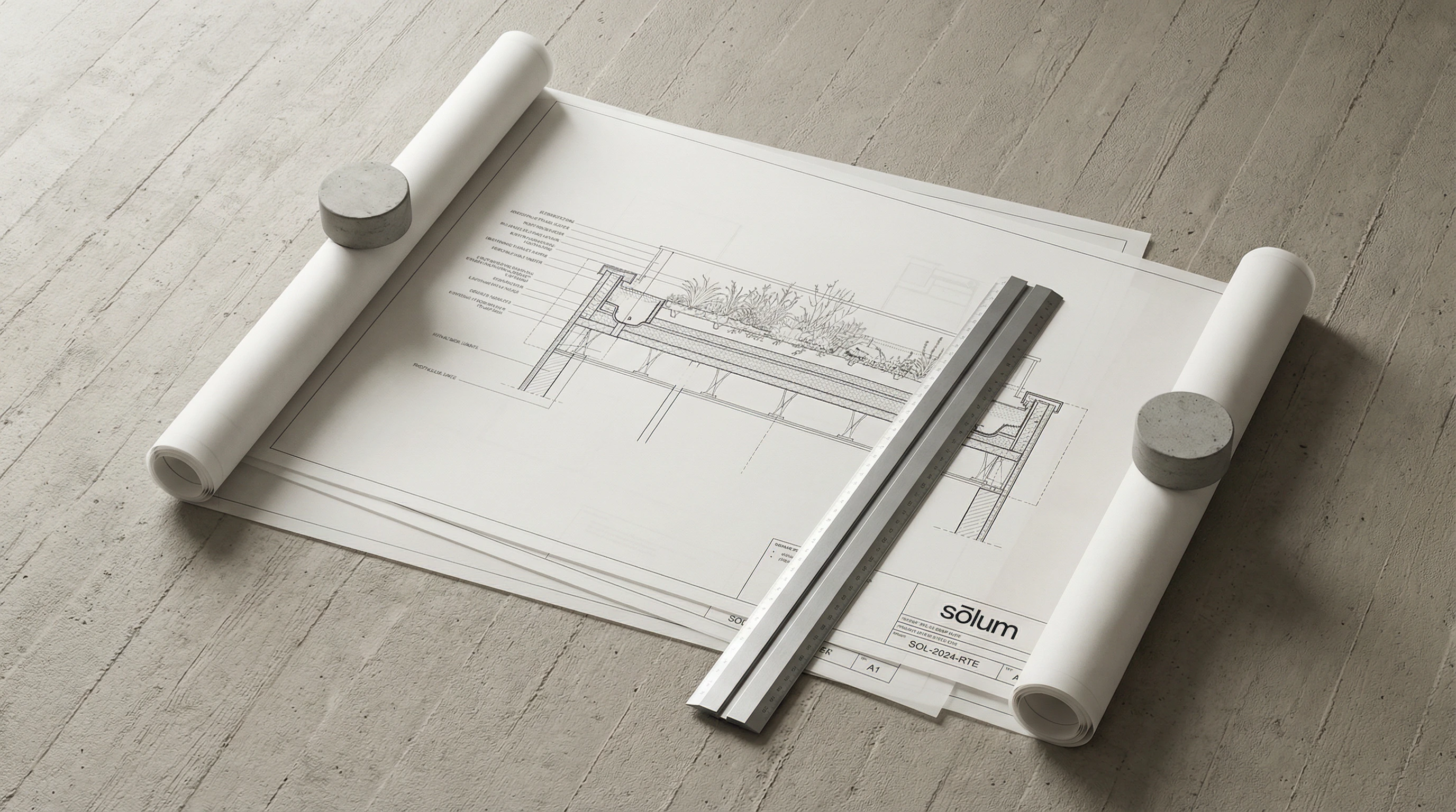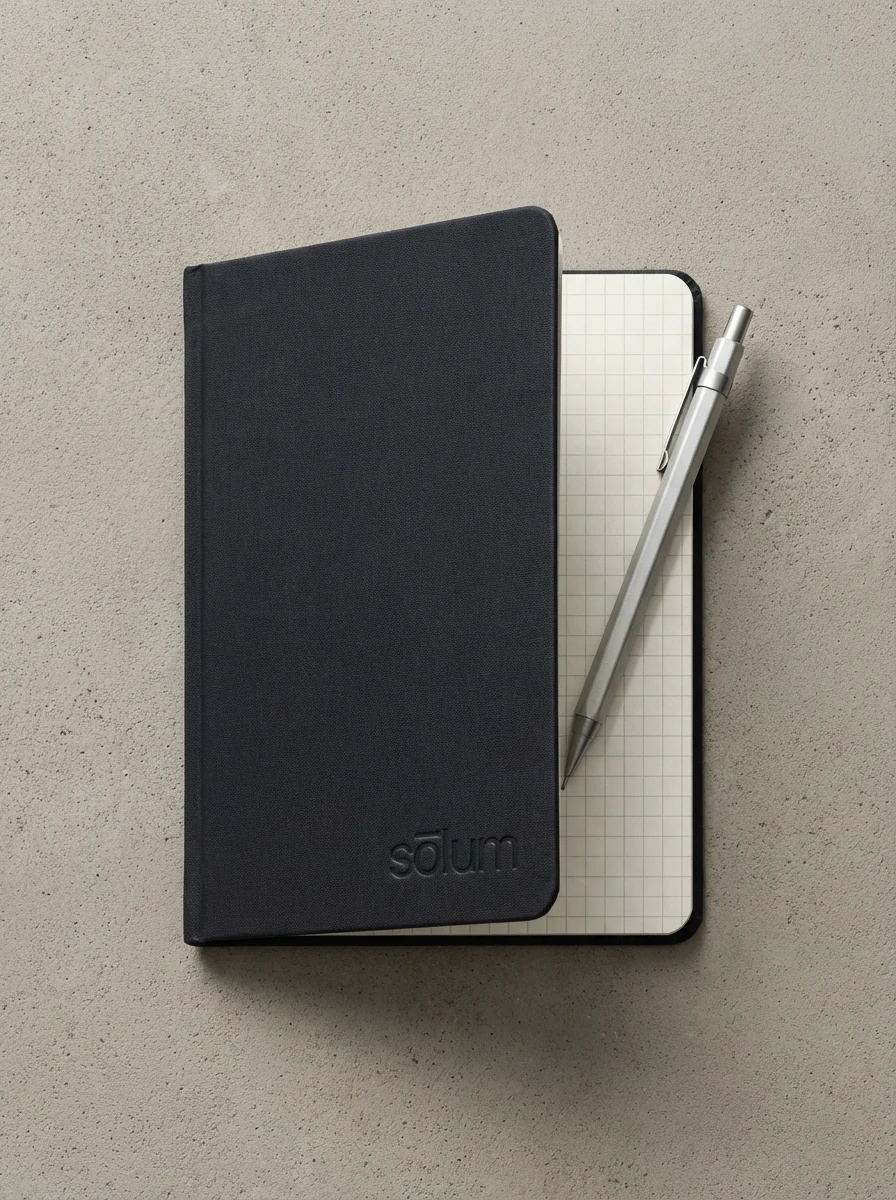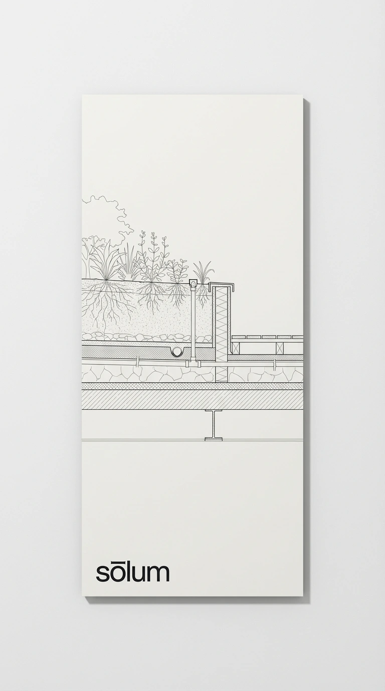 "sōlum" — set entirely lowercase, in a single weight of a geometric sans-serif. The macron above the ō is the only distinguishing mark in the system, and it does more work than any decorative element could. Slightly extended beyond the letter's natural width on both sides, it functions simultaneously as a diacritic, a horizontal rule, a datum line, and the brand's sole visual signature. At small sizes it reads as an accent. At large sizes it reads as architecture.