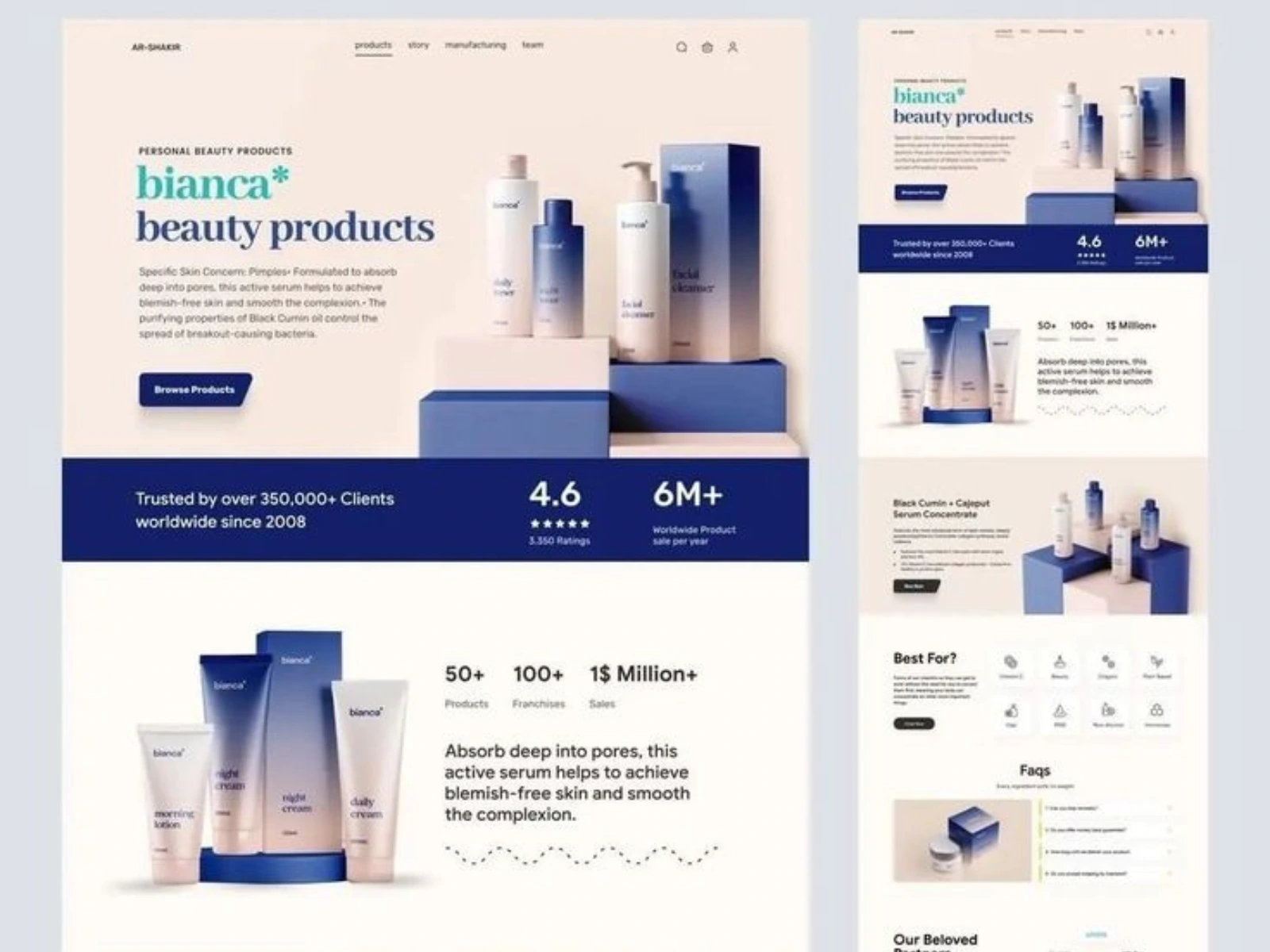 A sophisticated and trust-inspiring UI/UX design for Bianca, a personal beauty products brand.