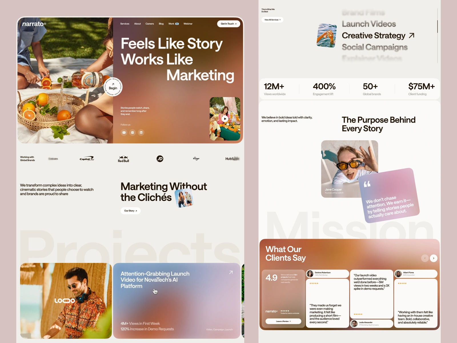 Modern SaaS marketing website UI/UX design created in Figma for a storytelling-focused brand.