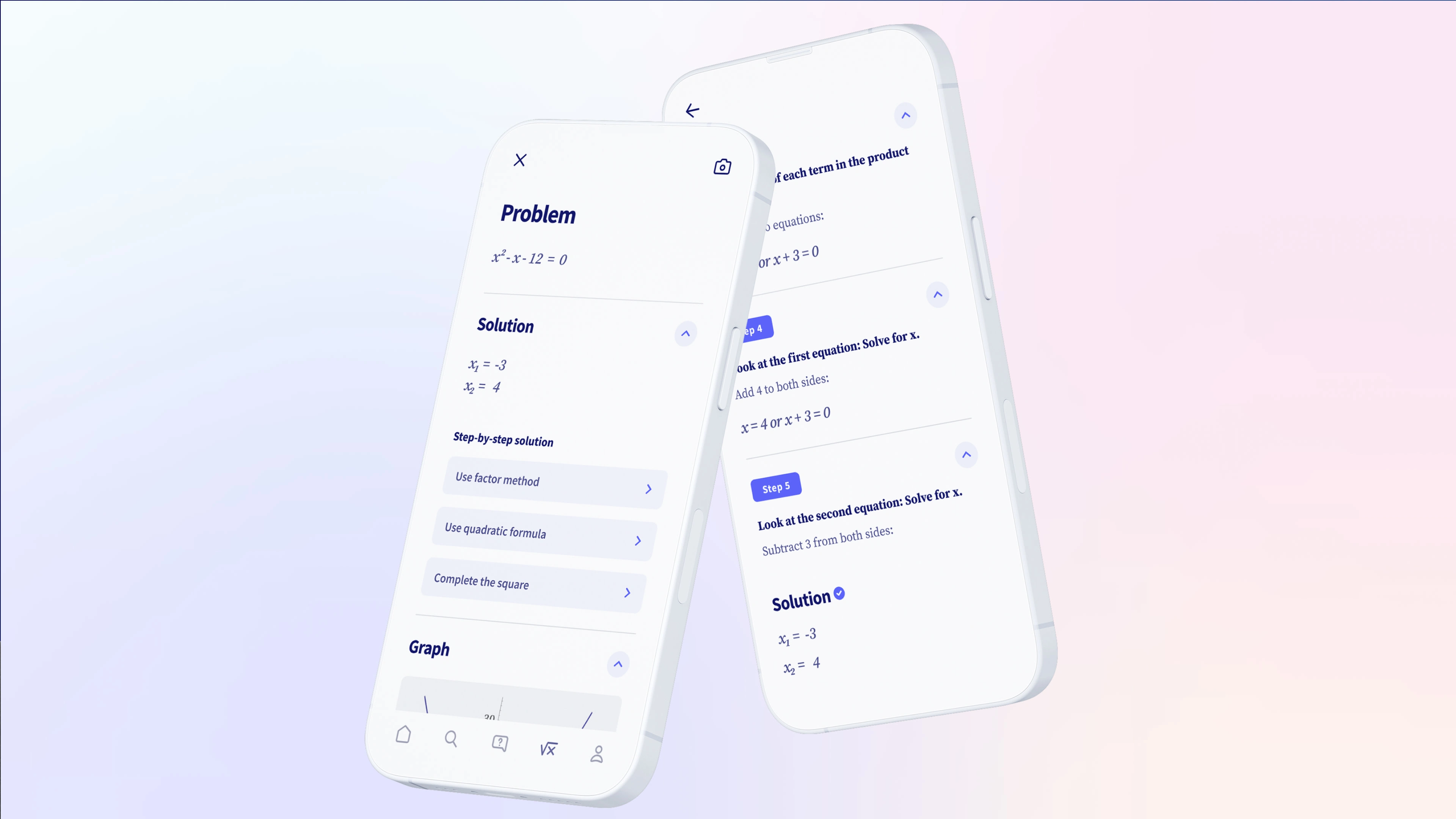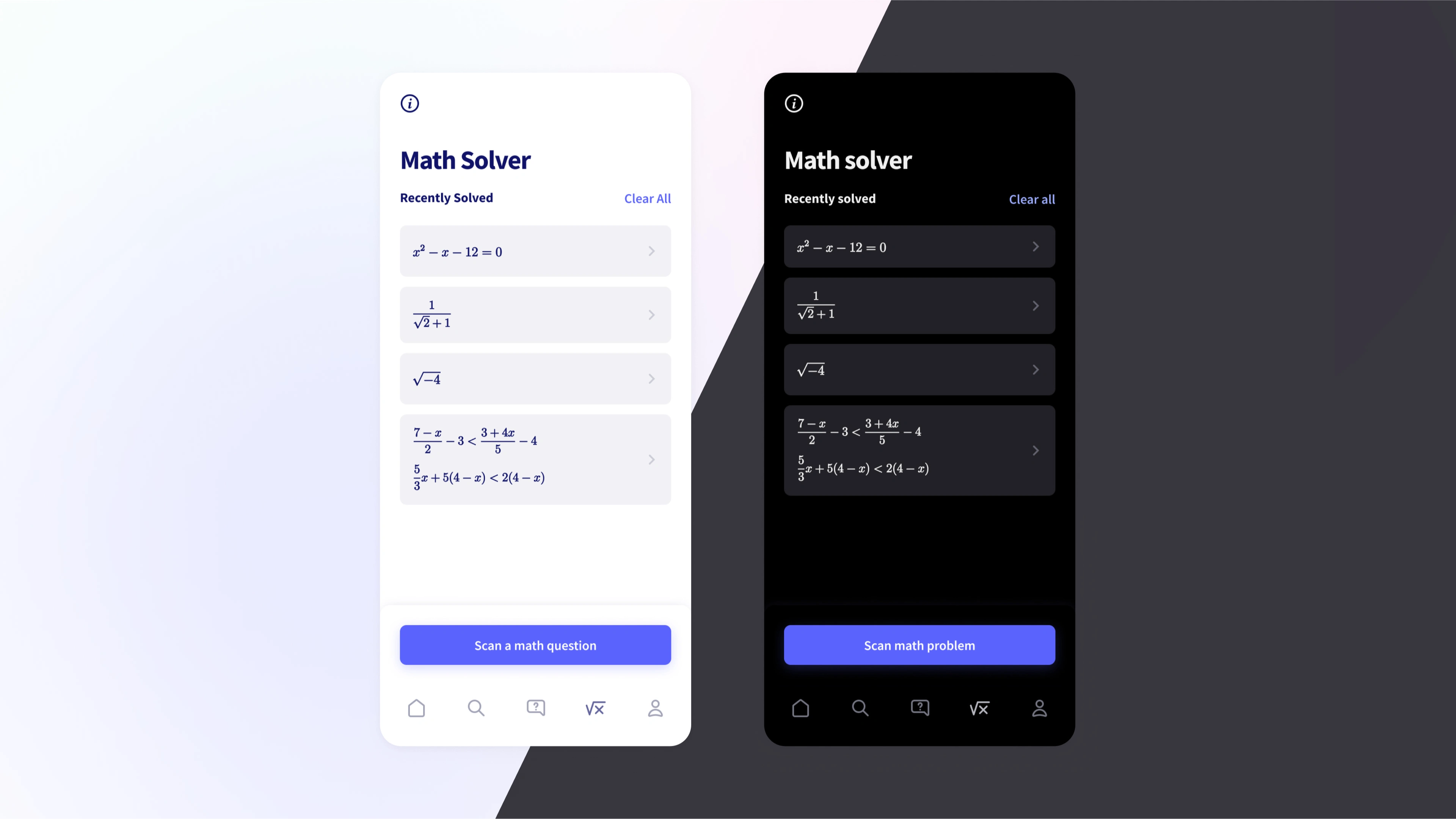 I designed an extension to the current application (iOS and Android) concerning its branding and style. The application will solve math equations using the phone's camera to get instant results.