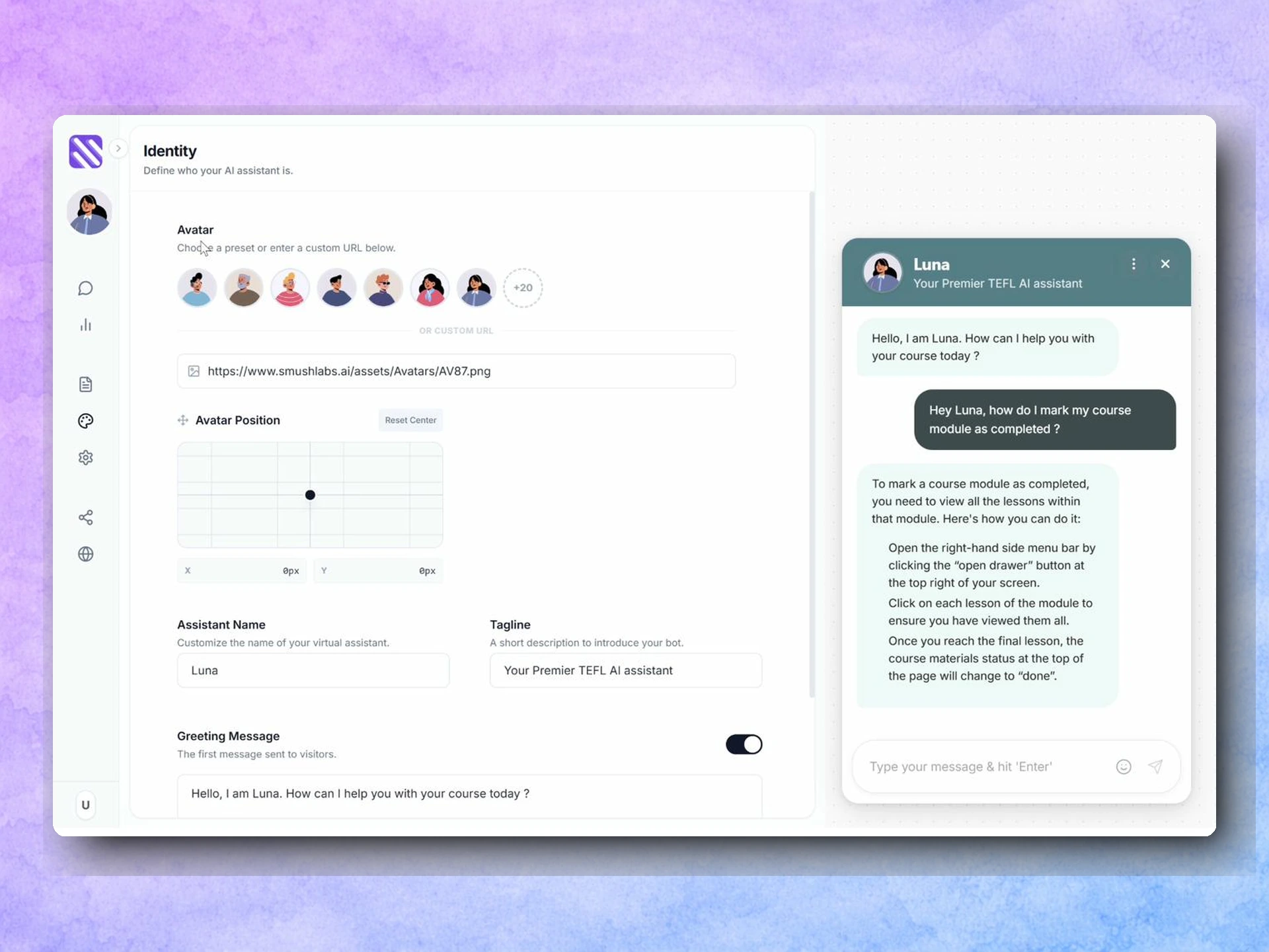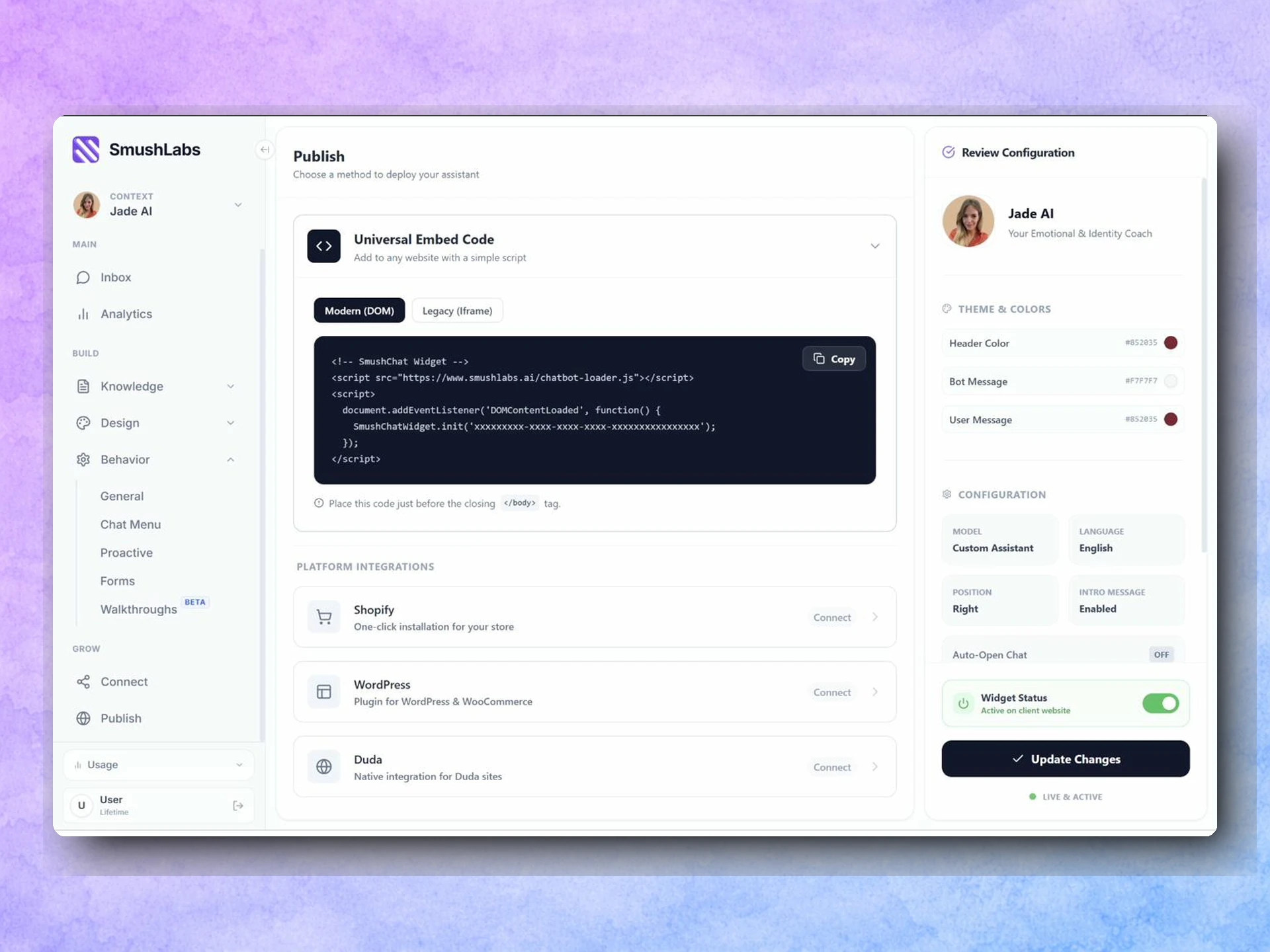 Customize Your Widget (5 minutes): Set personality, colors, and greeting message