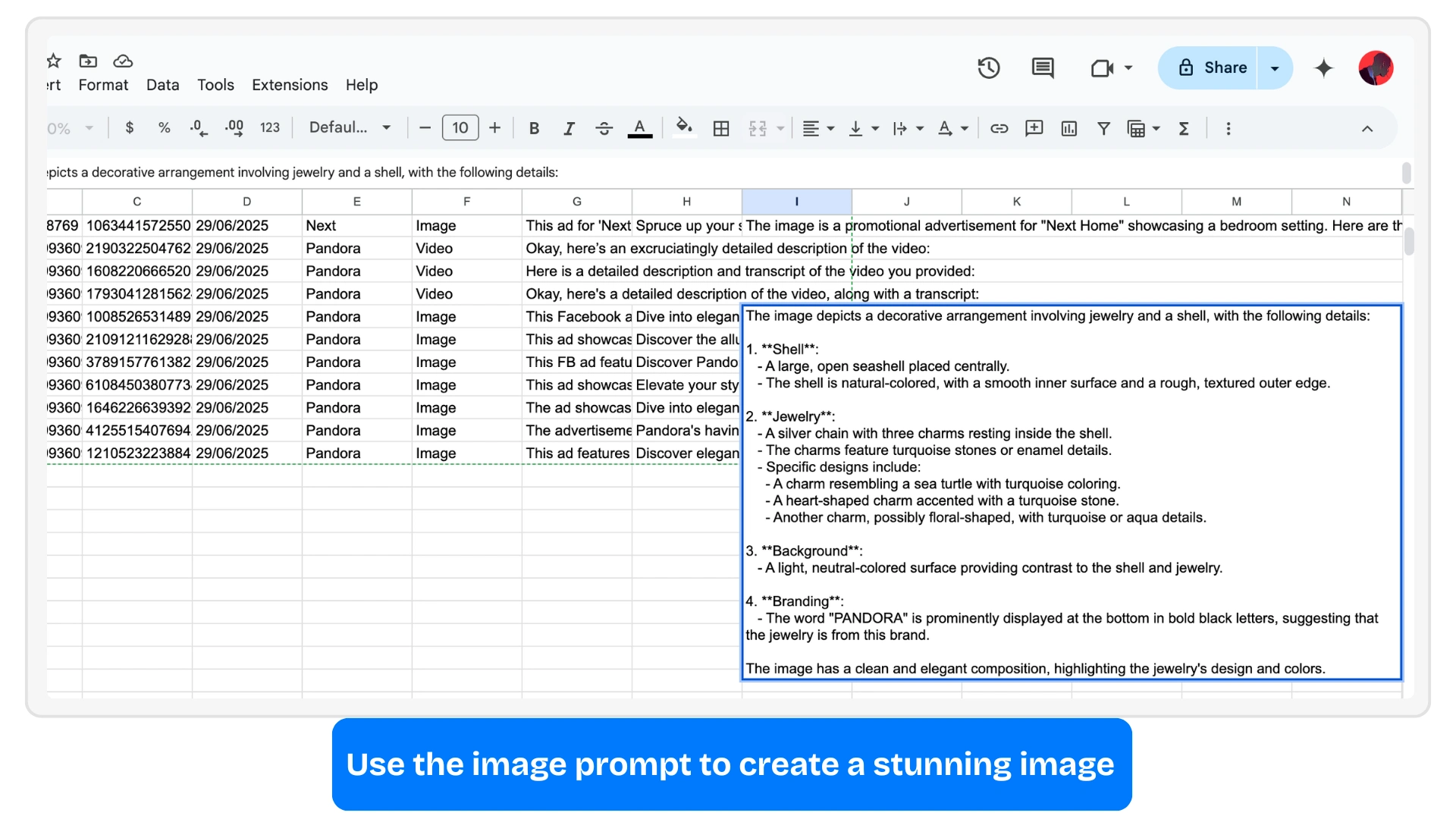 If the Ad is an image, it will give you an image prompt that you can use to generate an image