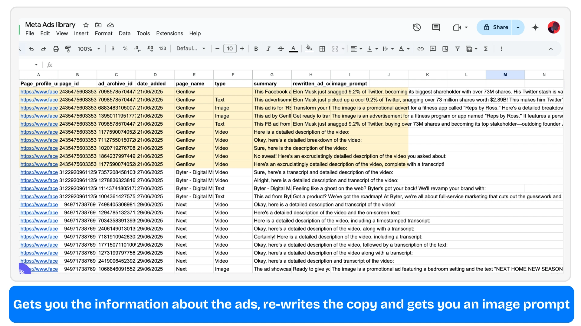 This system doesn’t just collect ad data. It turns it into a usable creative asset, cutting research time, improving visibility, and turning Meta's ad library into a strategic advantage.