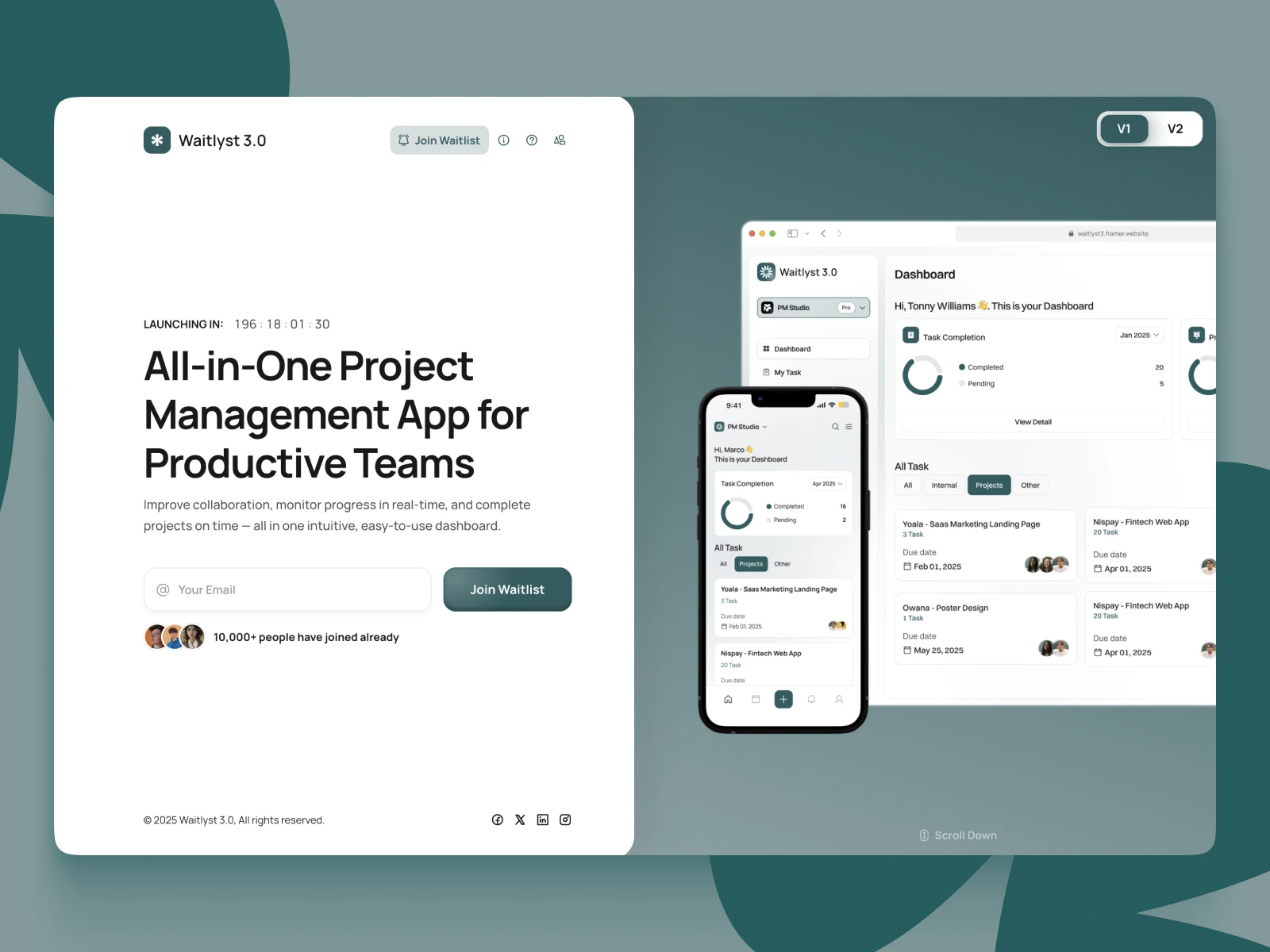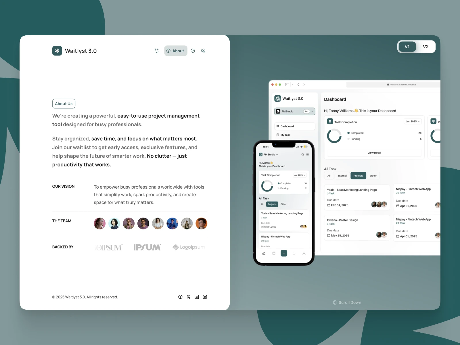 Avvio is a sleek, minimal yet advanced & totally free waitlist template for Framer, perfect for launching products and capturing early users.