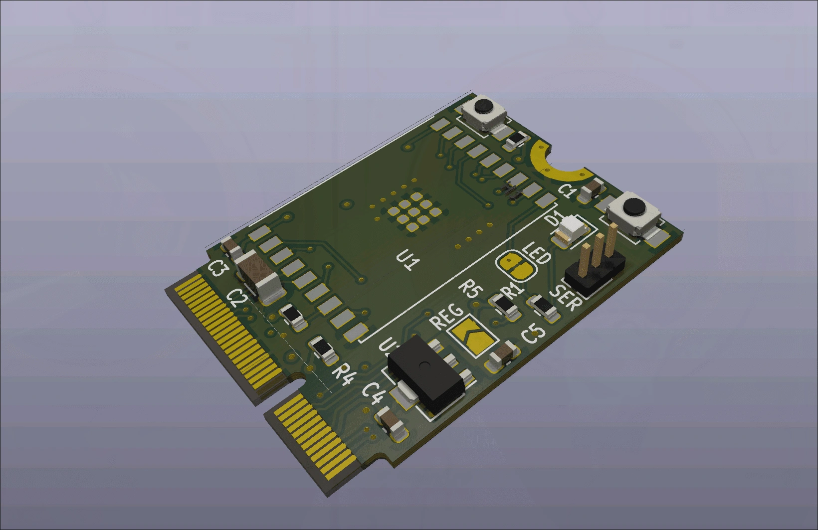 Layer minimal module in M2 E Key format compatible with sparkfun's MCU carrierboards. This board was used for non public project with a carrier board that provide LoRa communications for agricultural application.