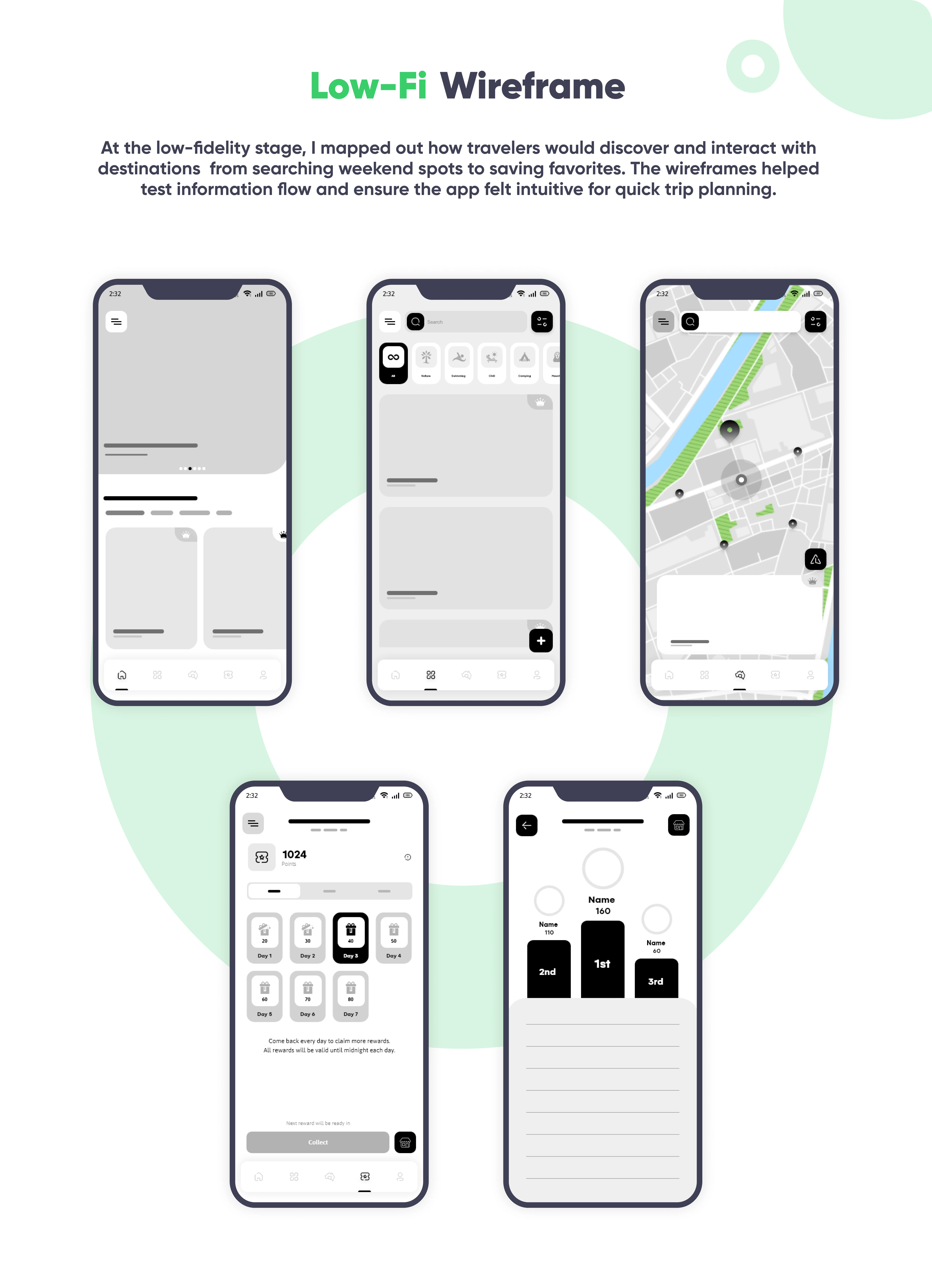 Built a travel discovery app with 30+ categories, intuitive flows, and user-tested UI to simplify weekend trip planning across Australia.