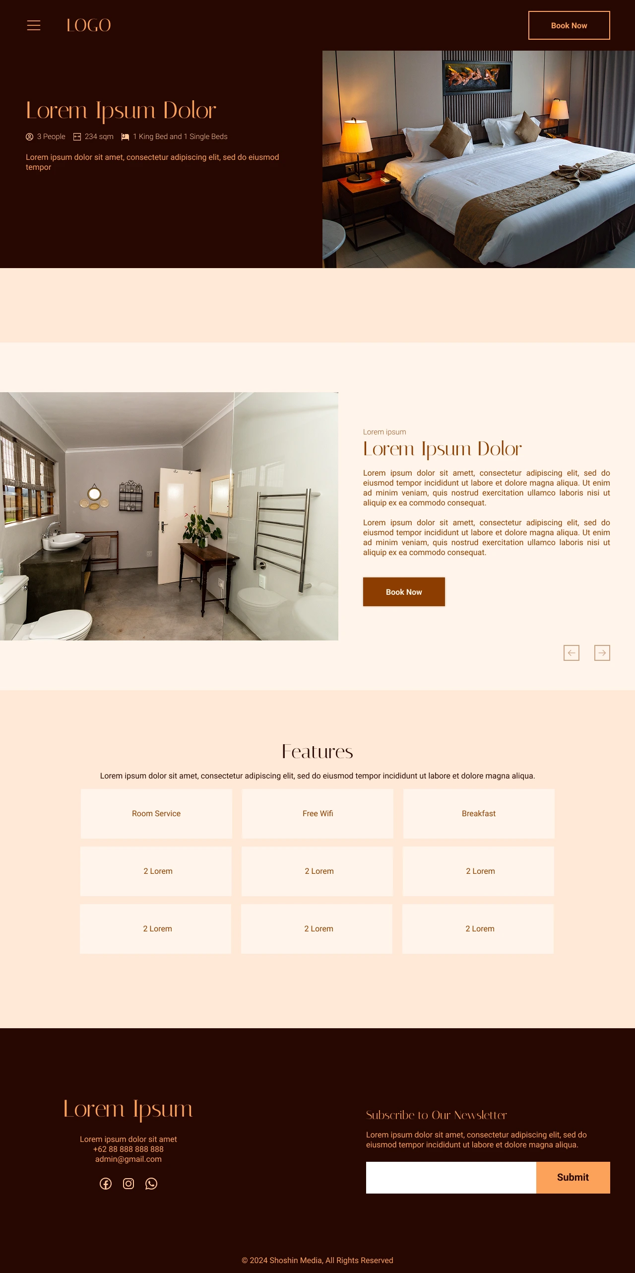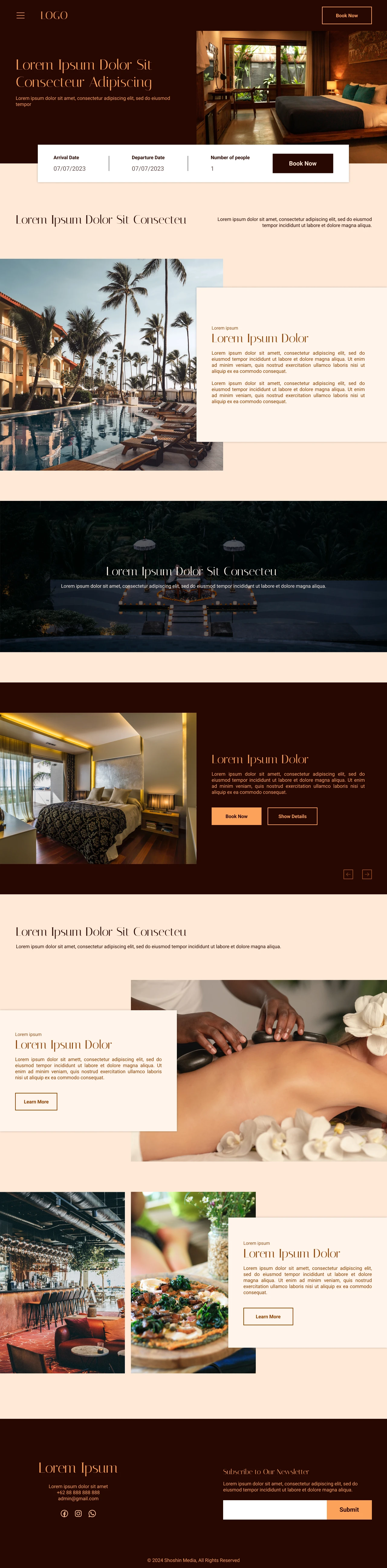 Offers a clean, user-friendly interface with booking available from the hero section, plus clear sections for rooms, restaurant, spa, and packages.