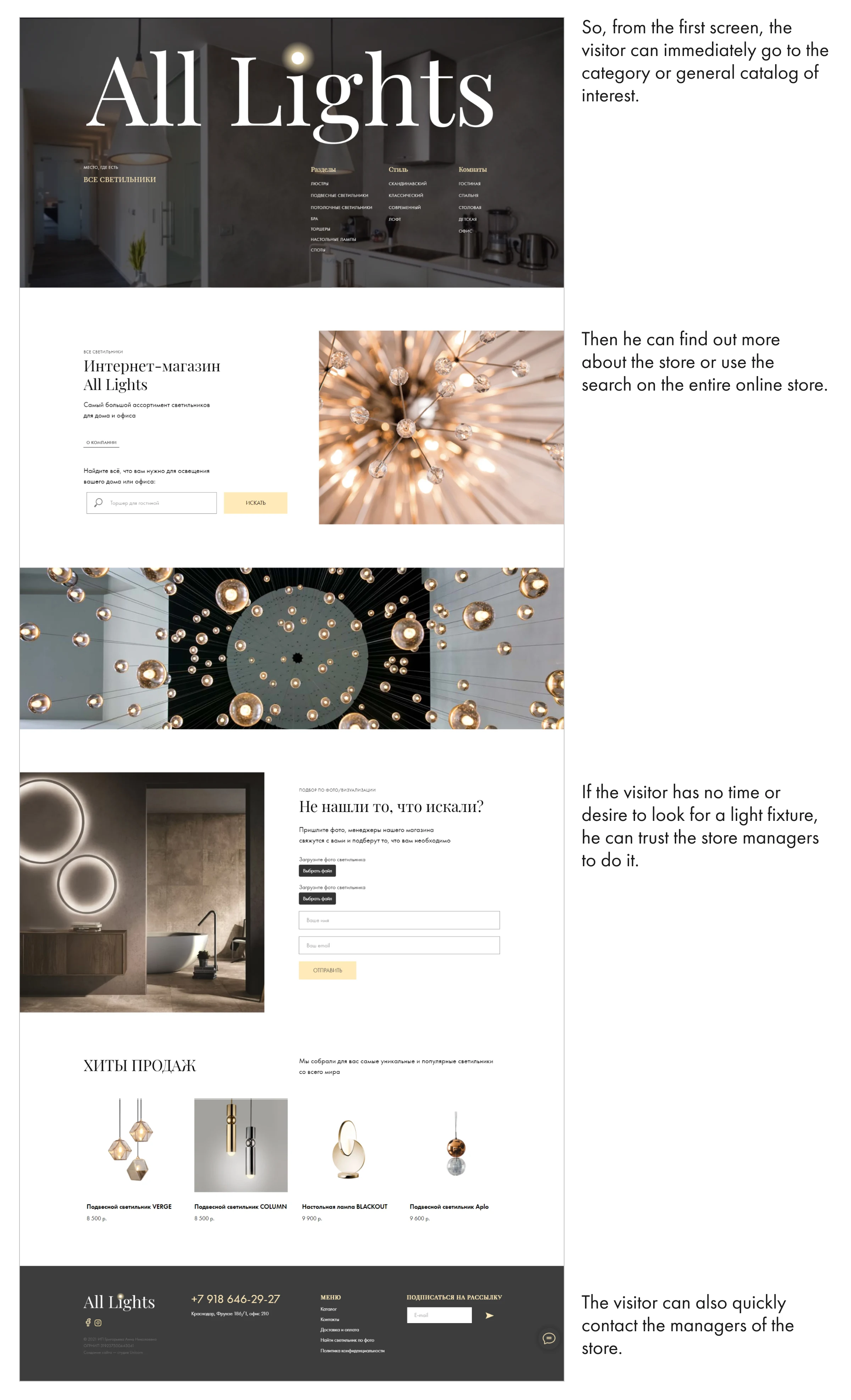 Online store crafted for a lighting retailer, combining aesthetic appeal with seamless functionality to highlight products and drive conversions.
