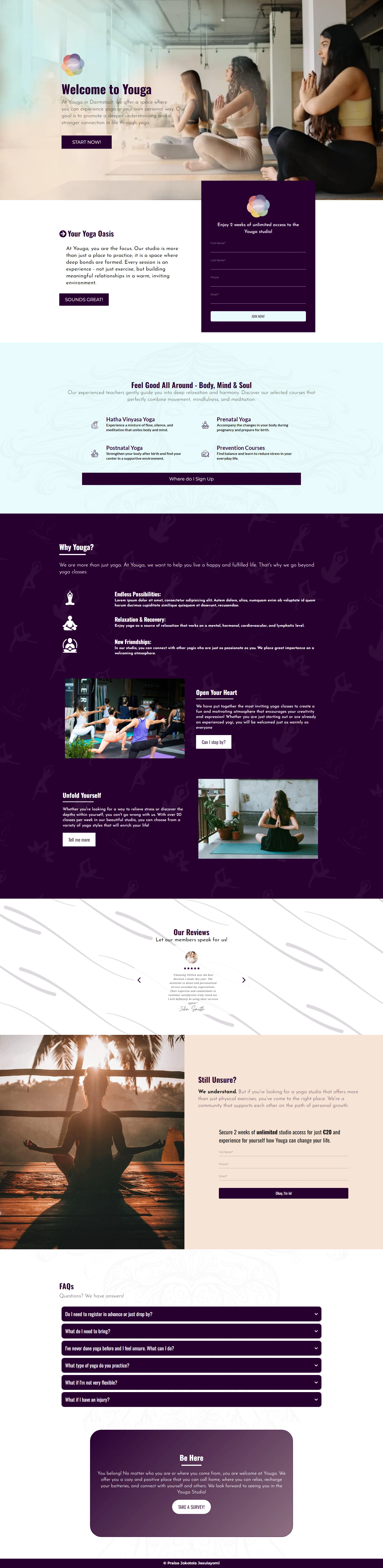 A landing page was built on kajabi for a yoga club based in germany