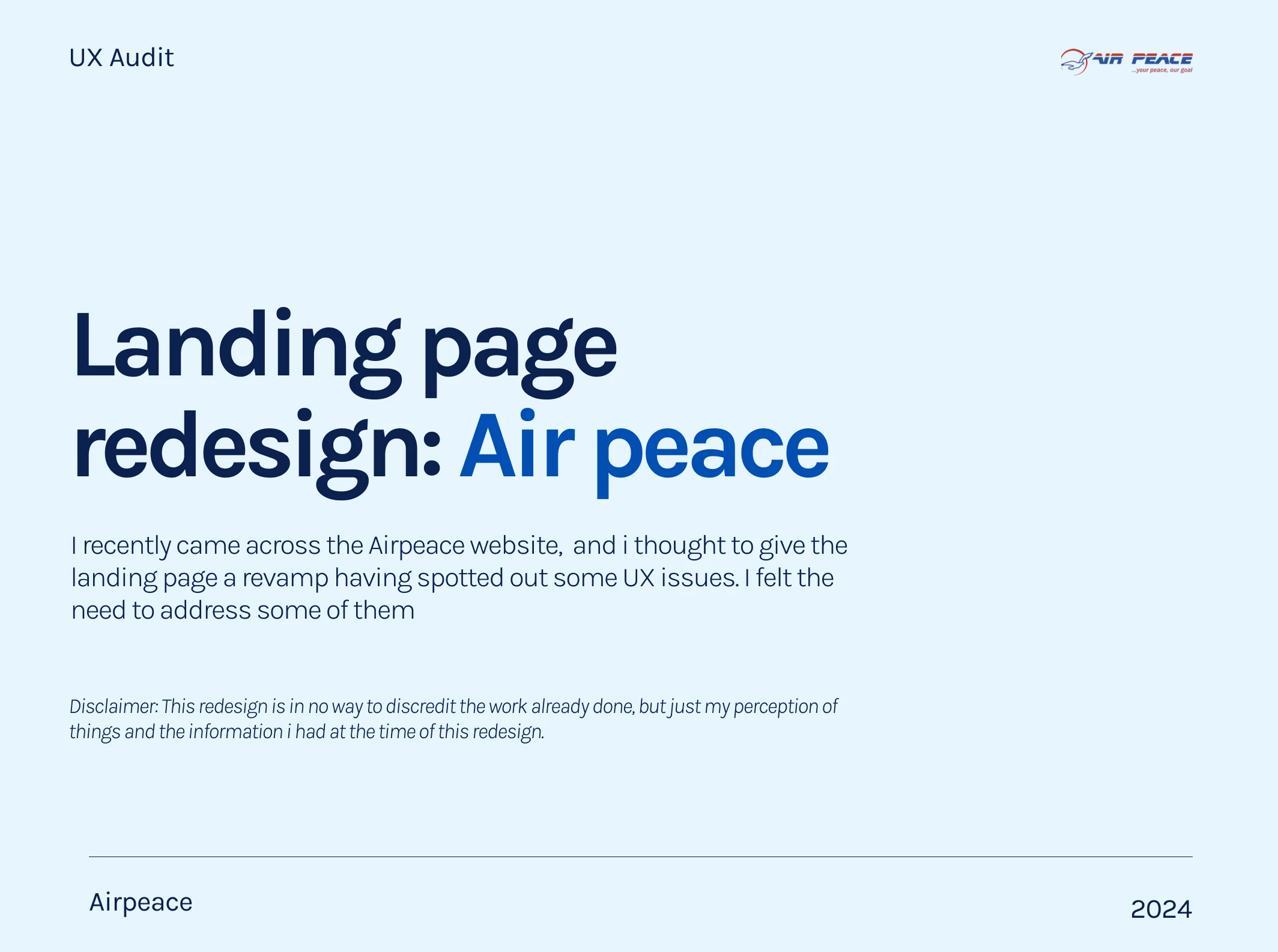 Landing page concept redesign for AirPeace — A focused UX audit and cleanup of key issues, with an improved overall landing page UI.