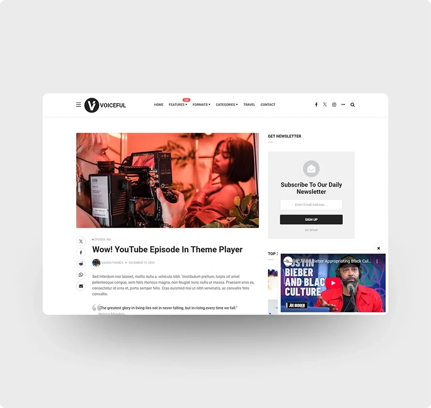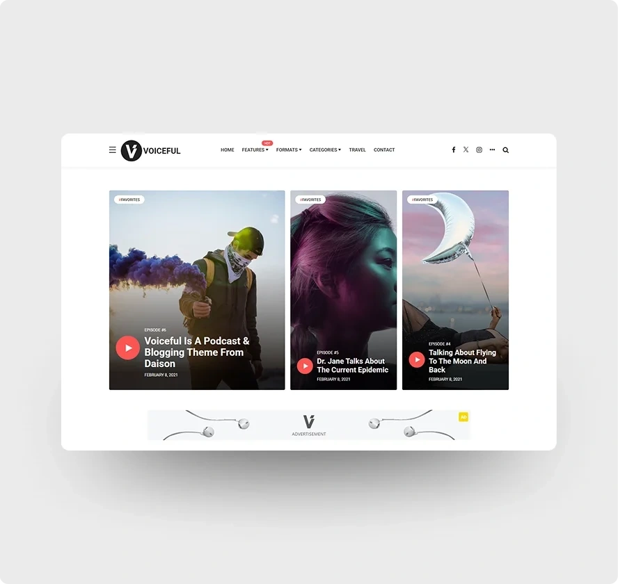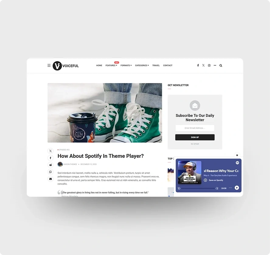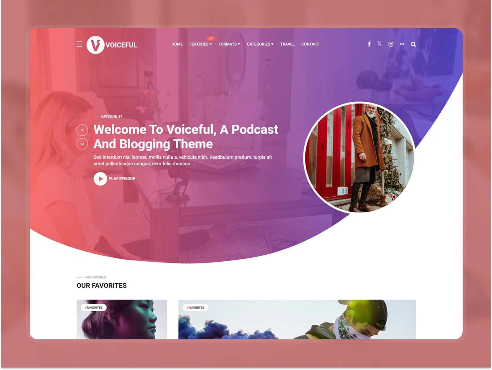 A theme for podcasters and bloggers, build with the latest podcasting trends in mind. Simple, mobile-friendly and a built in media player making it easy to embed your own MP3 files, YouTube, Spotify, SoundCloud and all other WordPress supported sites.