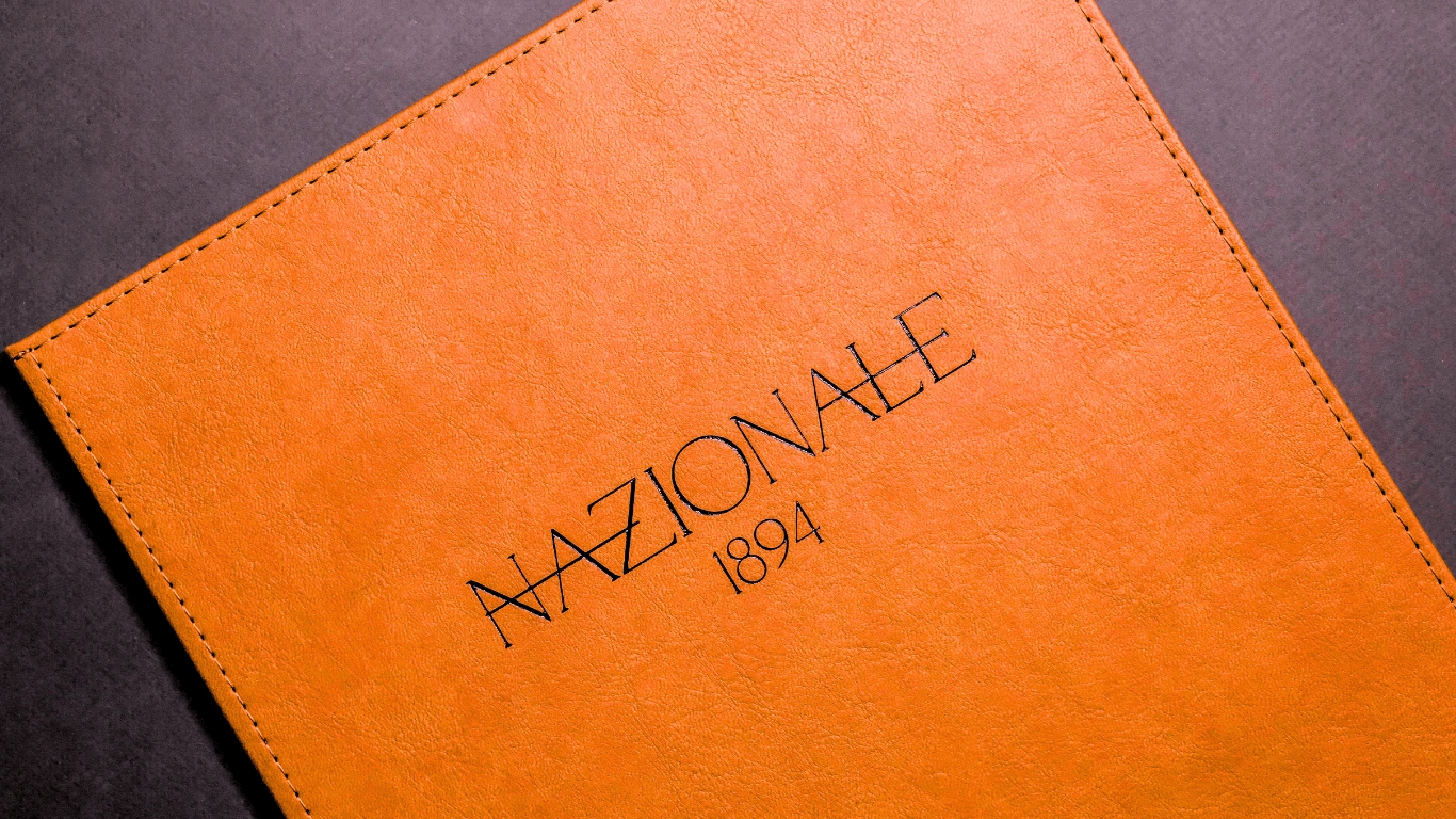 Brand identity for Nazionale Bistrò & Restaurant, featuring a comprehensive visual identity that includes the logo, menus and internal signage.