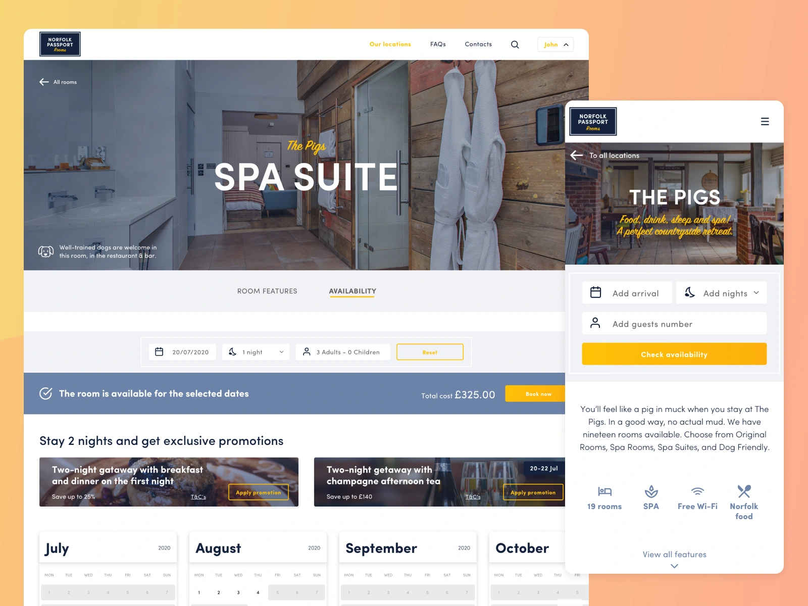 Product design of the booking platform for Norfolk Passport, hospitality provider in the Norfolk area of England.