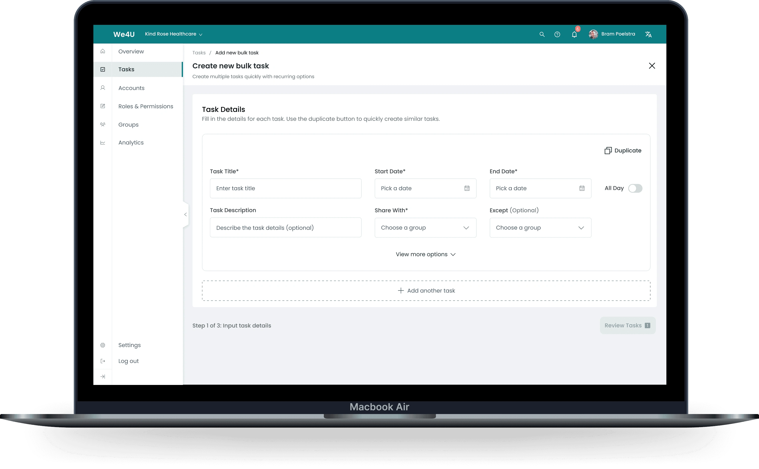 Task coordination is the operational backbone for community organizations and care facilities, connecting thousands of residents, volunteers, and coordinators. However, two core aspects of the workflow were limiting efficiency and scalability for admins, team leaders and support staff in informal care settings at health, sports, aged-care centers and more.