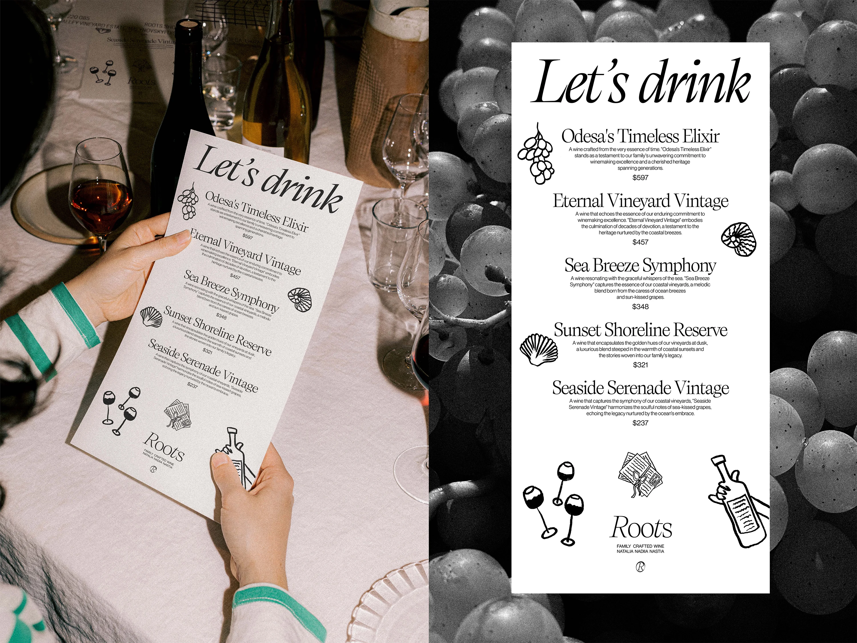 ROOTS Wine is a family vineyard on the sun-soaked coast of Odesa, South Ukraine, nurtured across generations of remarkable women, Grandmother Natalia, Daughter Nadiia, and Granddaughter Nastia. More than a vineyard, it is a place of heritage, care, and creativity, where wine, art, and life intertwine under the golden sun.