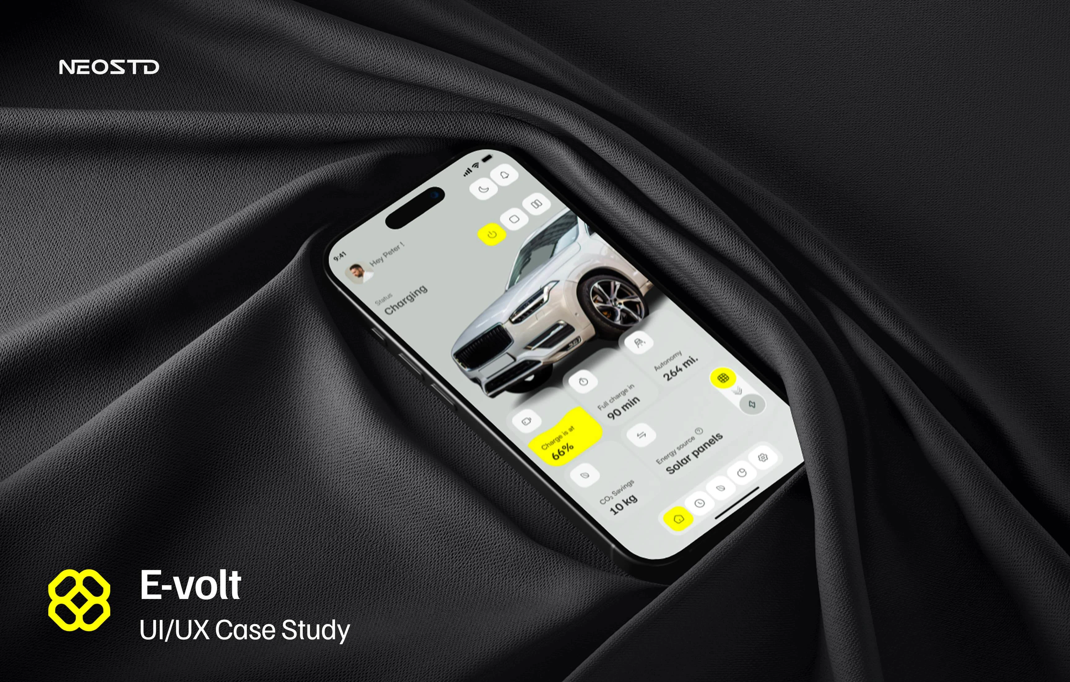 Designing E-Volt, an EV charging app. Process, Target, Metrics, User Experience and Global Art Direction