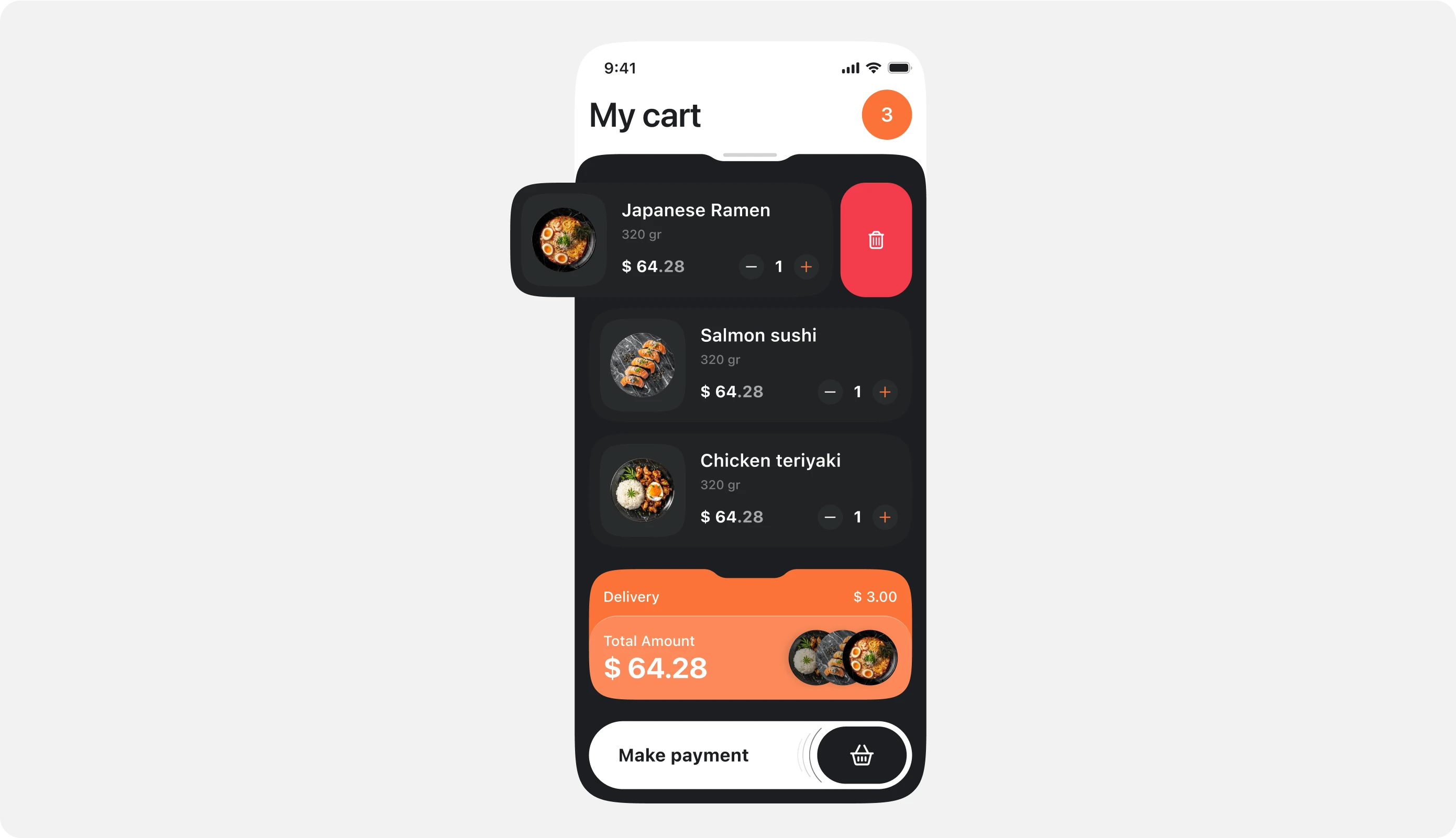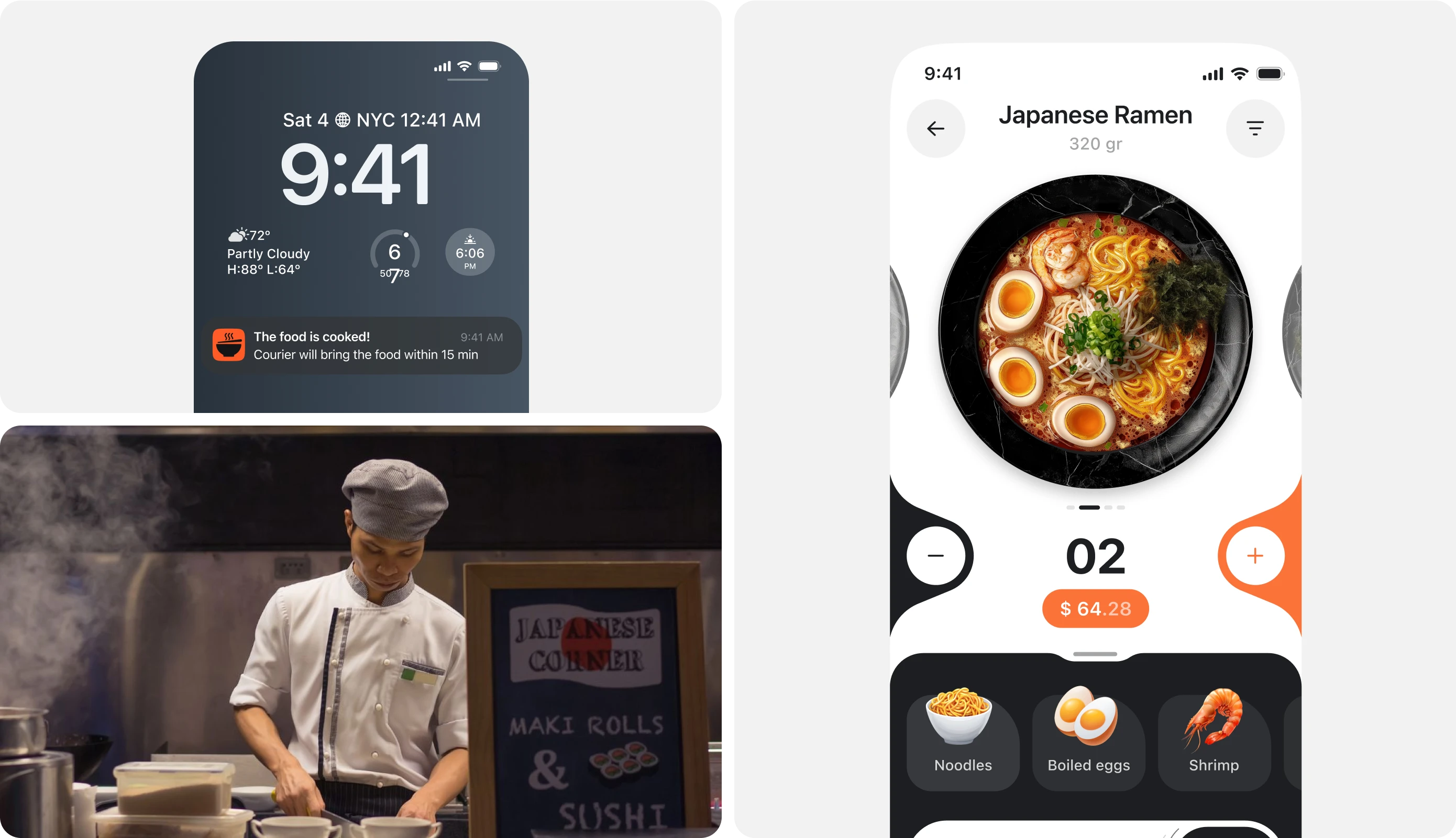 Explored user expectations in food delivery apps and analyzed competitors to define key scenarios, from menu browsing to checkout