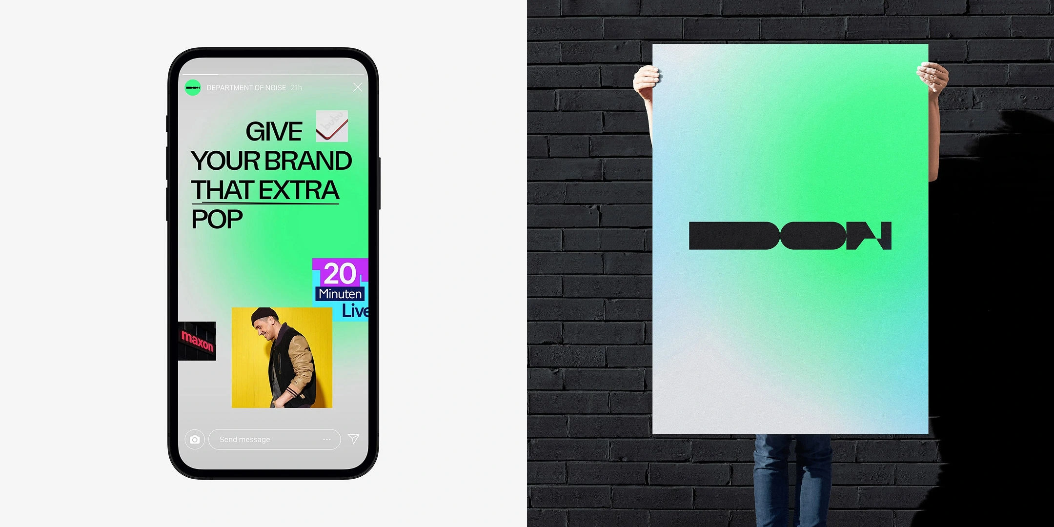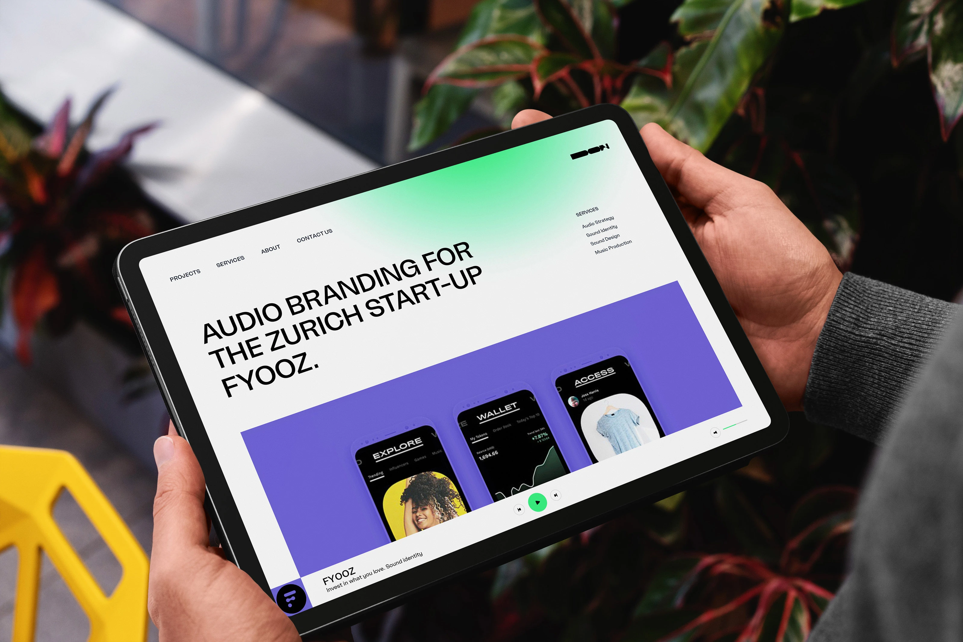 The soft and fluid forms represent digital transformation. The changing colours are associated with the positive emotions that sound brings to people's lives. In contrast, the bold graphical shapes convey simplicity, reduction, structure, and rhythm. This active presence is well communicated by the fluent animations and dynamic typographic compositions.