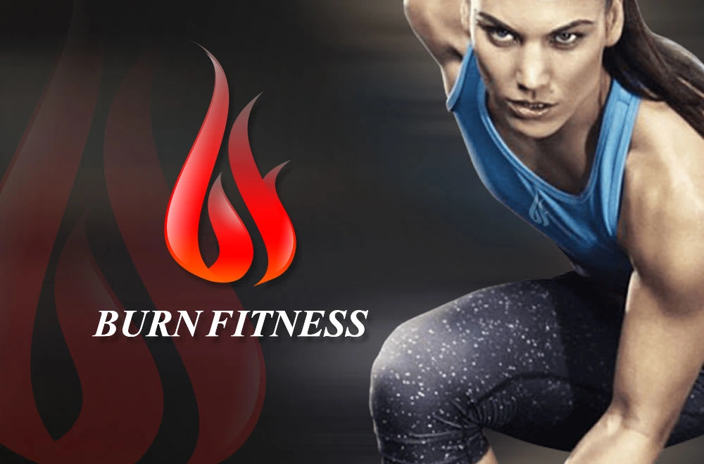 Designed Logo and Visual Identity for Burn Fitness. An effective centre for fitness, health and well-being, with breathtaking views of Pacific.