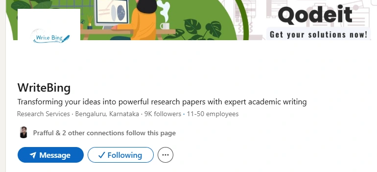 LinkedIn: Focus on credibility, case-studies/testimonials from past clients, research tips, and insights into thesis challenges. (https://www.linkedin.com/company/writebing/)