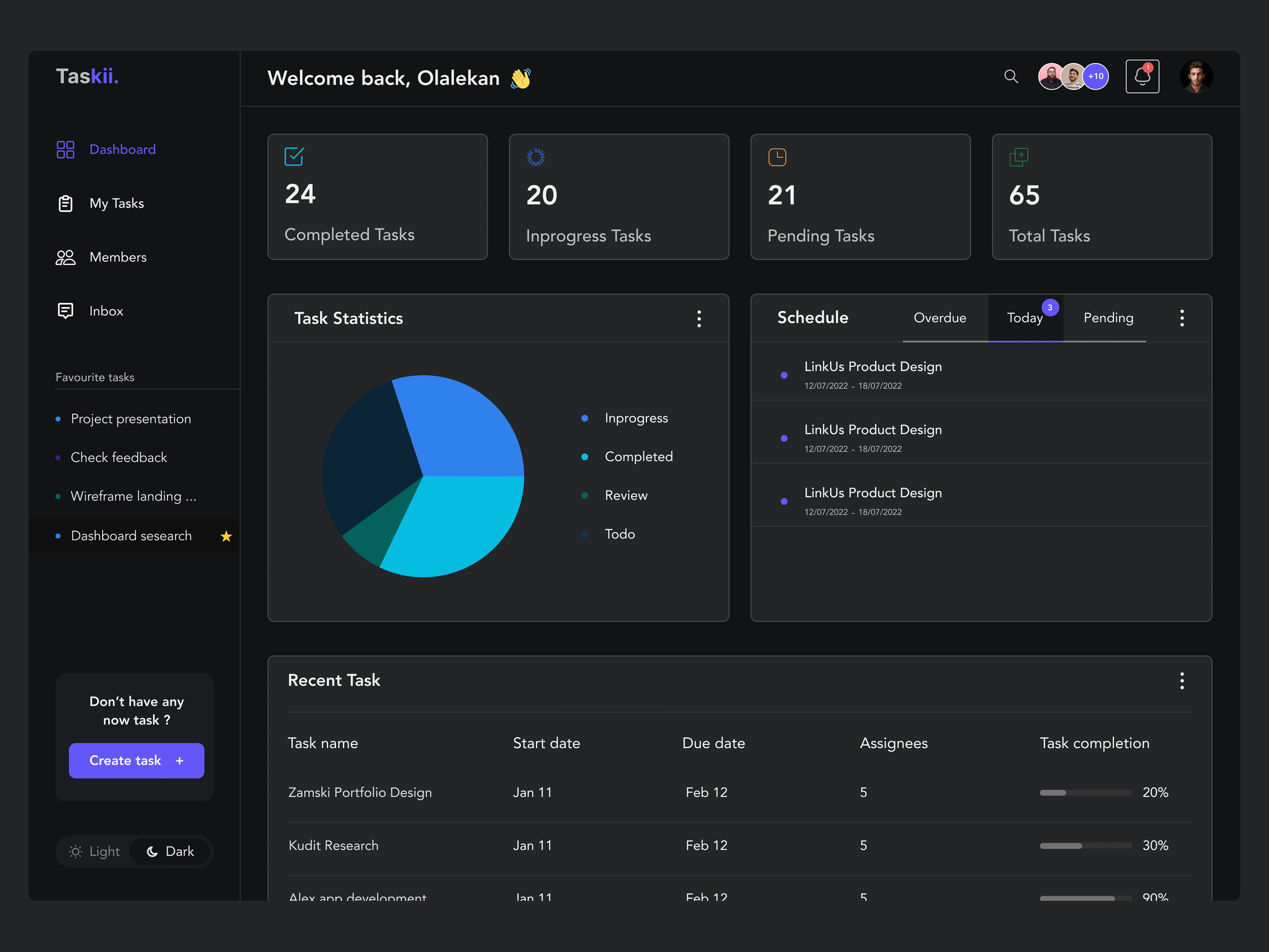 Taskii is a simplified SaaS web platform that enables companies and individuals to manage tasks, create and track projects, and track team progress.