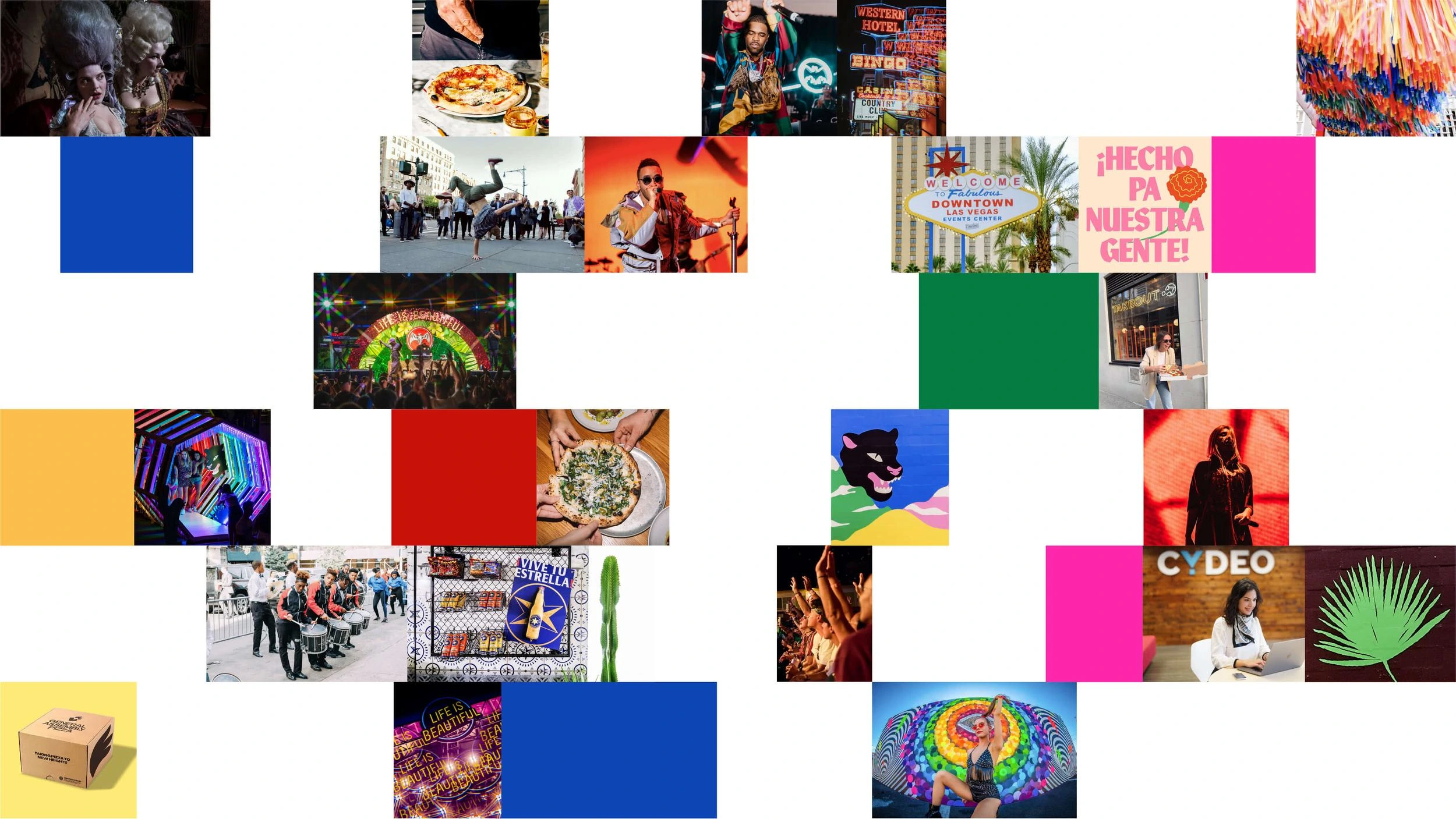 While the brand is anchored in black and white, the color palette is inspired by the colors found in Chinatown where the studio is located. As such, there’s extensive use of almost primary colors complemented by a saturated hot pink.