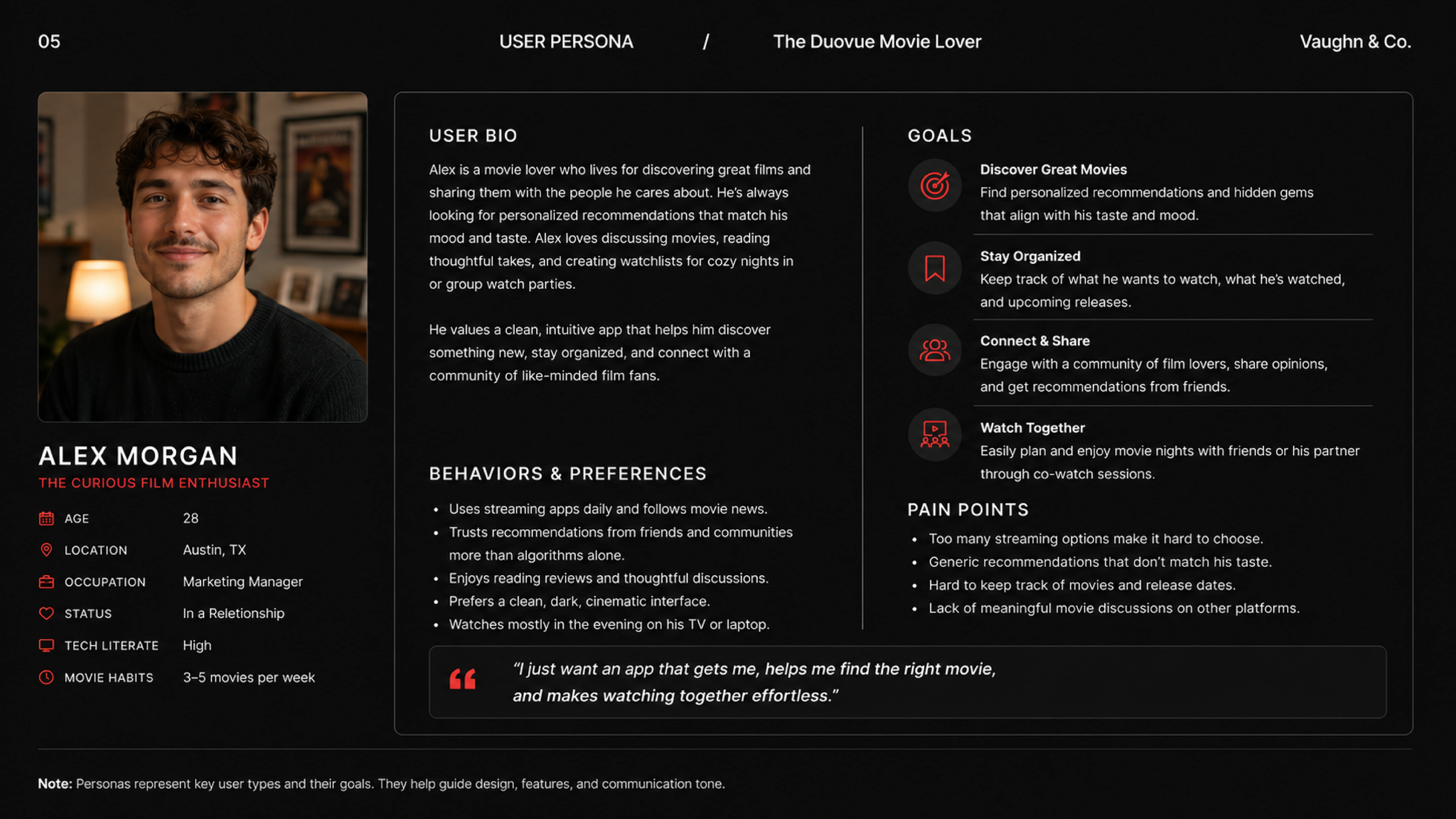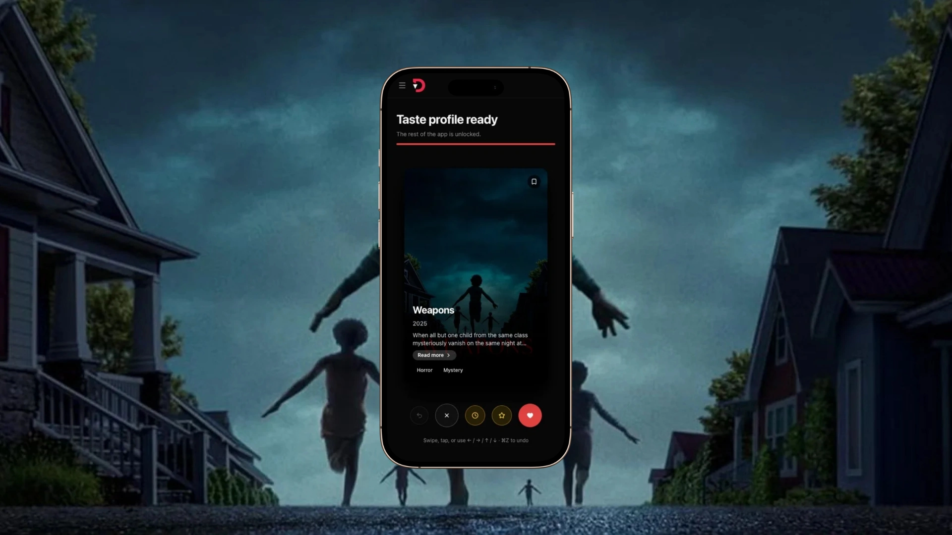 The idea came from real life — after countless nights scrolling endlessly with my wife trying to agree on a movie, I decided to create a better experience..