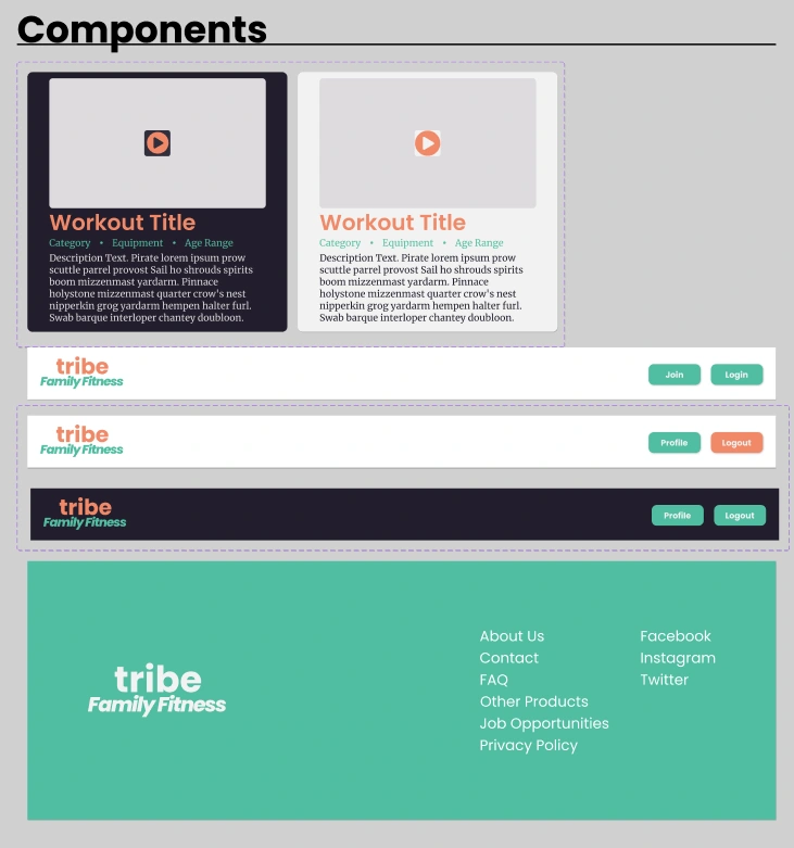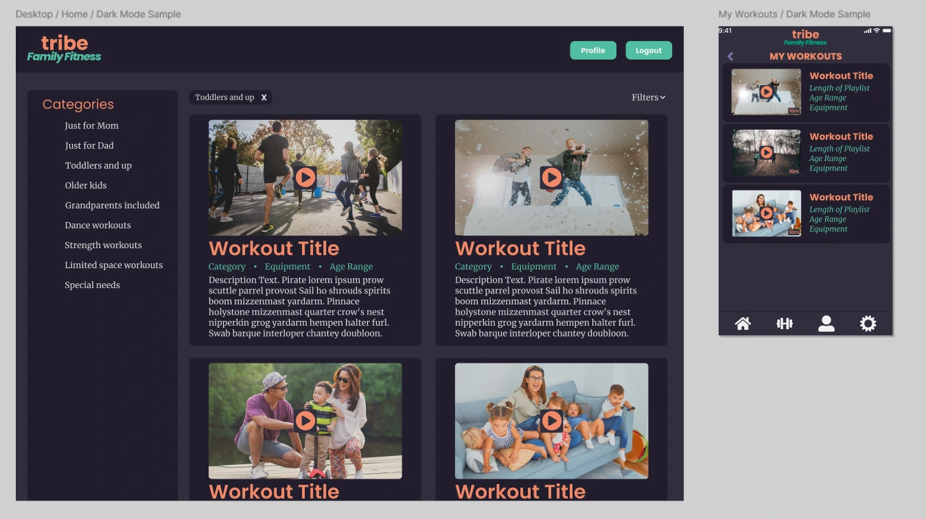 The objective of this sample project was to help Tribe Family Fitness create a new responsive workout app, in order to allow families to utilize workouts for all ages. Users would be able to easily begin a workout, search for personalized options, and view statistics.