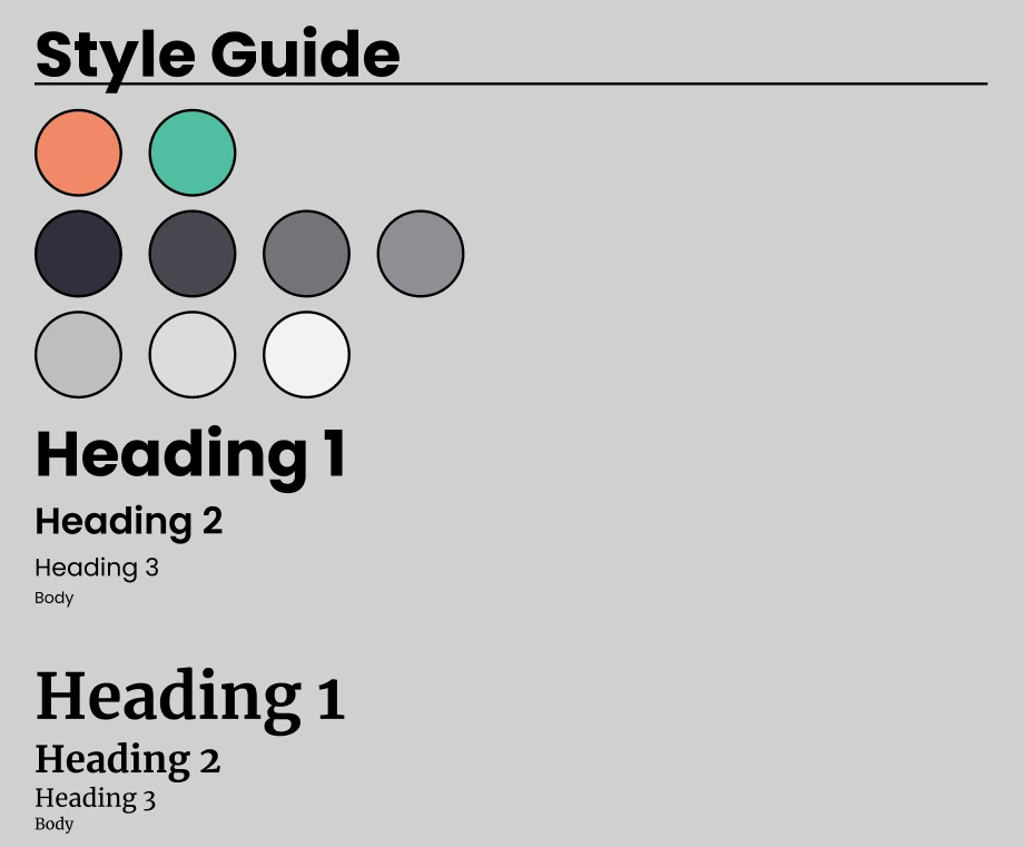 In preparation for the project I created a Style Guide that would allow for consistency throughout the project. Additionally I set up Components within Figma in order to reuse common elements across the project. I repeated this process for both Mobile and Desktop components.