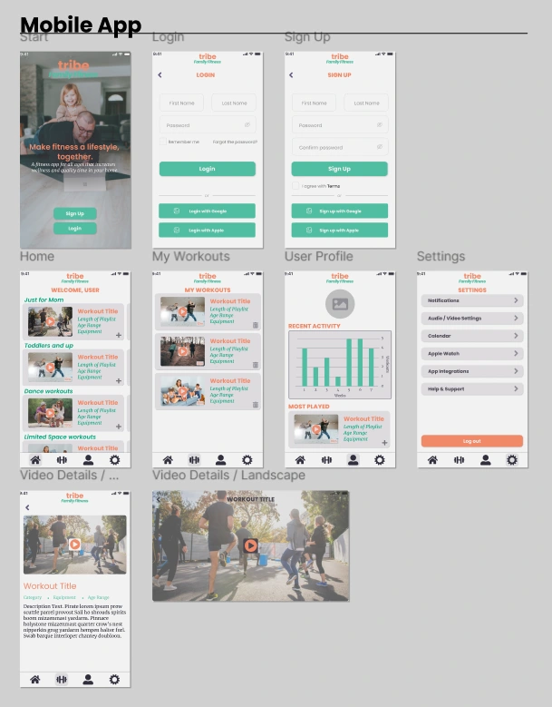 The end result was a clean and modern mobile and web experience that took into account users’ needs surrounding family-based fitness.
