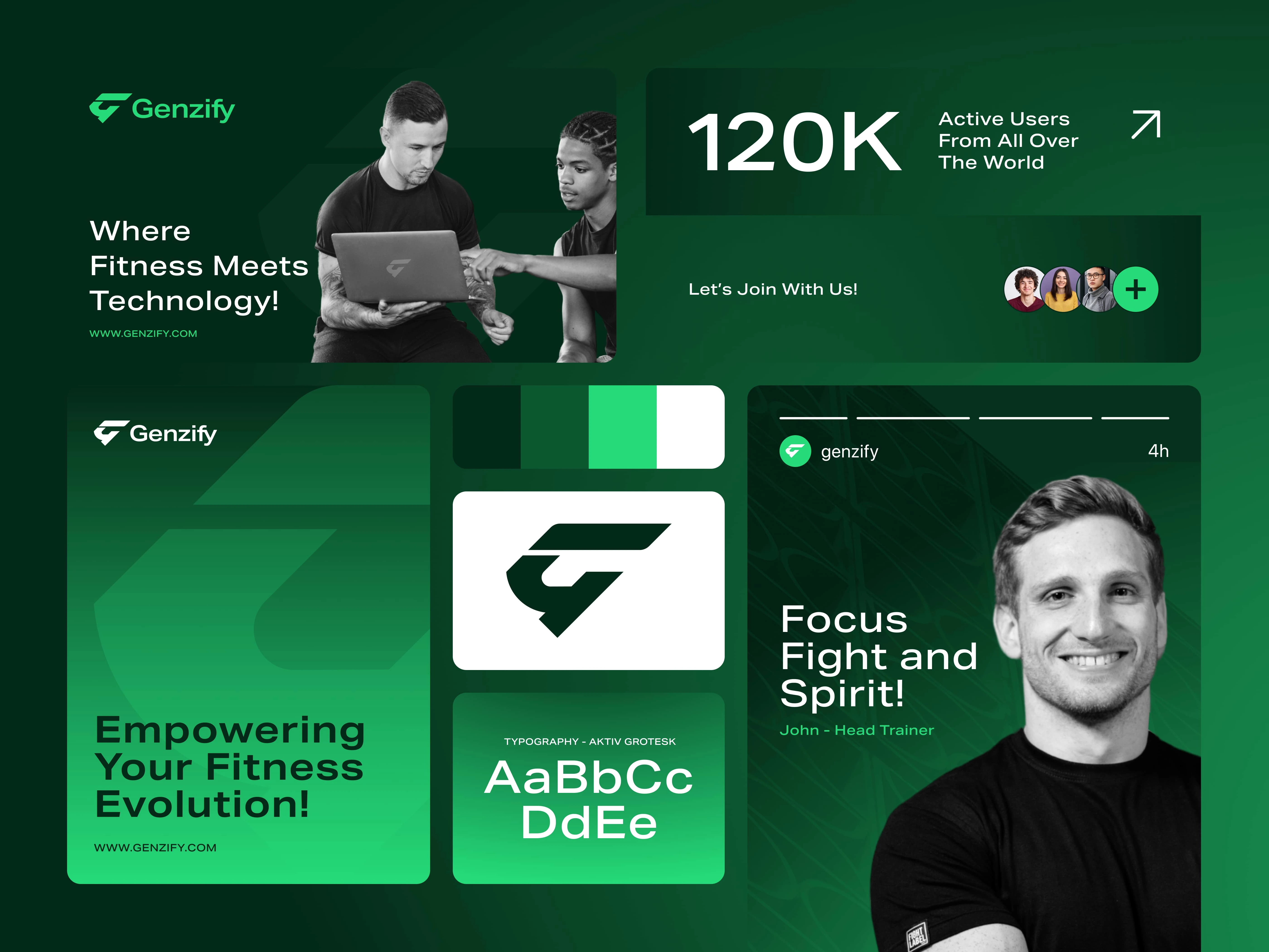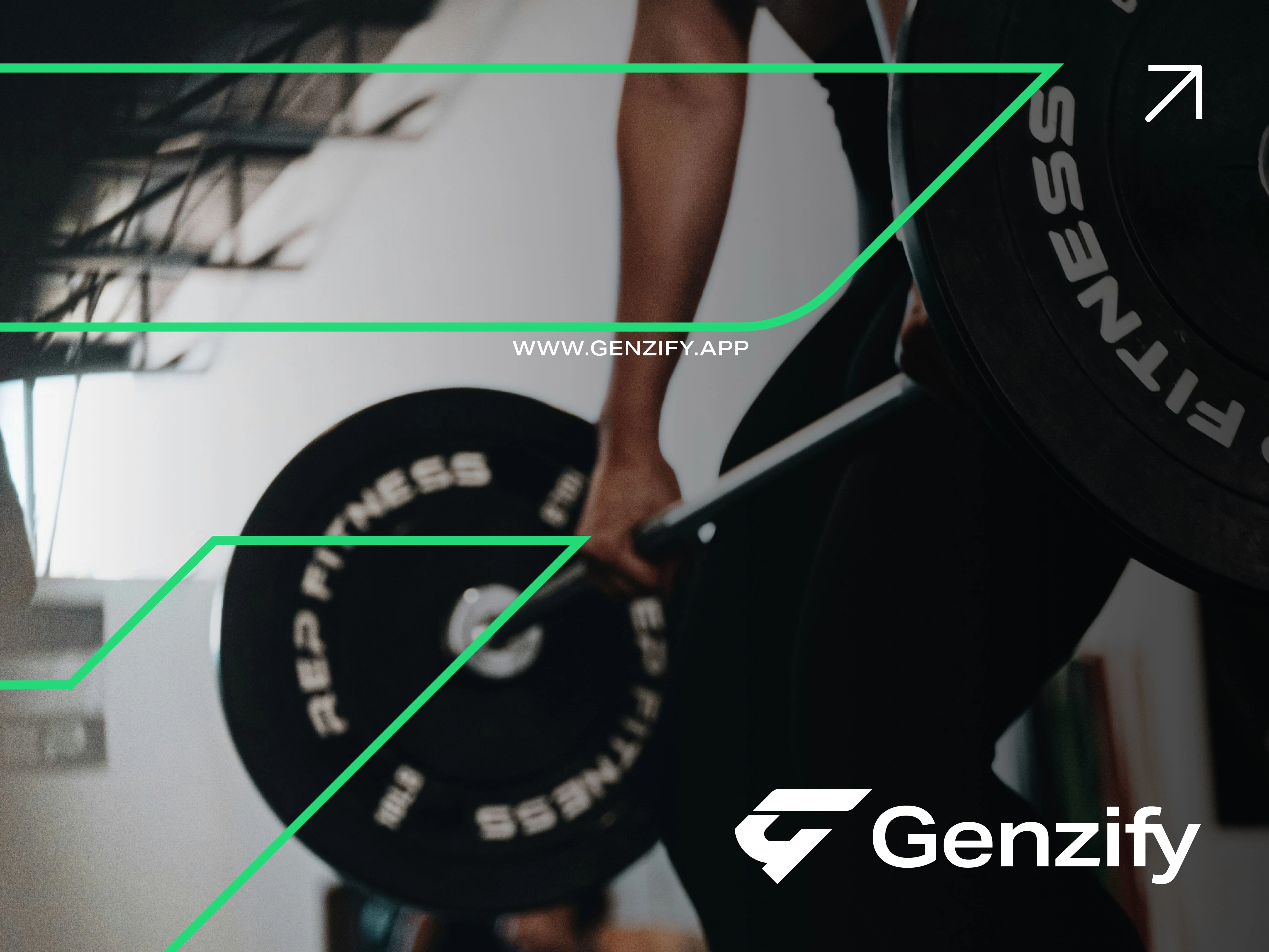 Introducing Genzify, a next-gen fitness app brand designed for the energetic and tech-savvy generation. The logo features a dynamic letter G with a vibrant green gradient, symbolizing movement, growth, and sustainability. Built for those who train smart and stay consistent — this is where fitness meets the future.