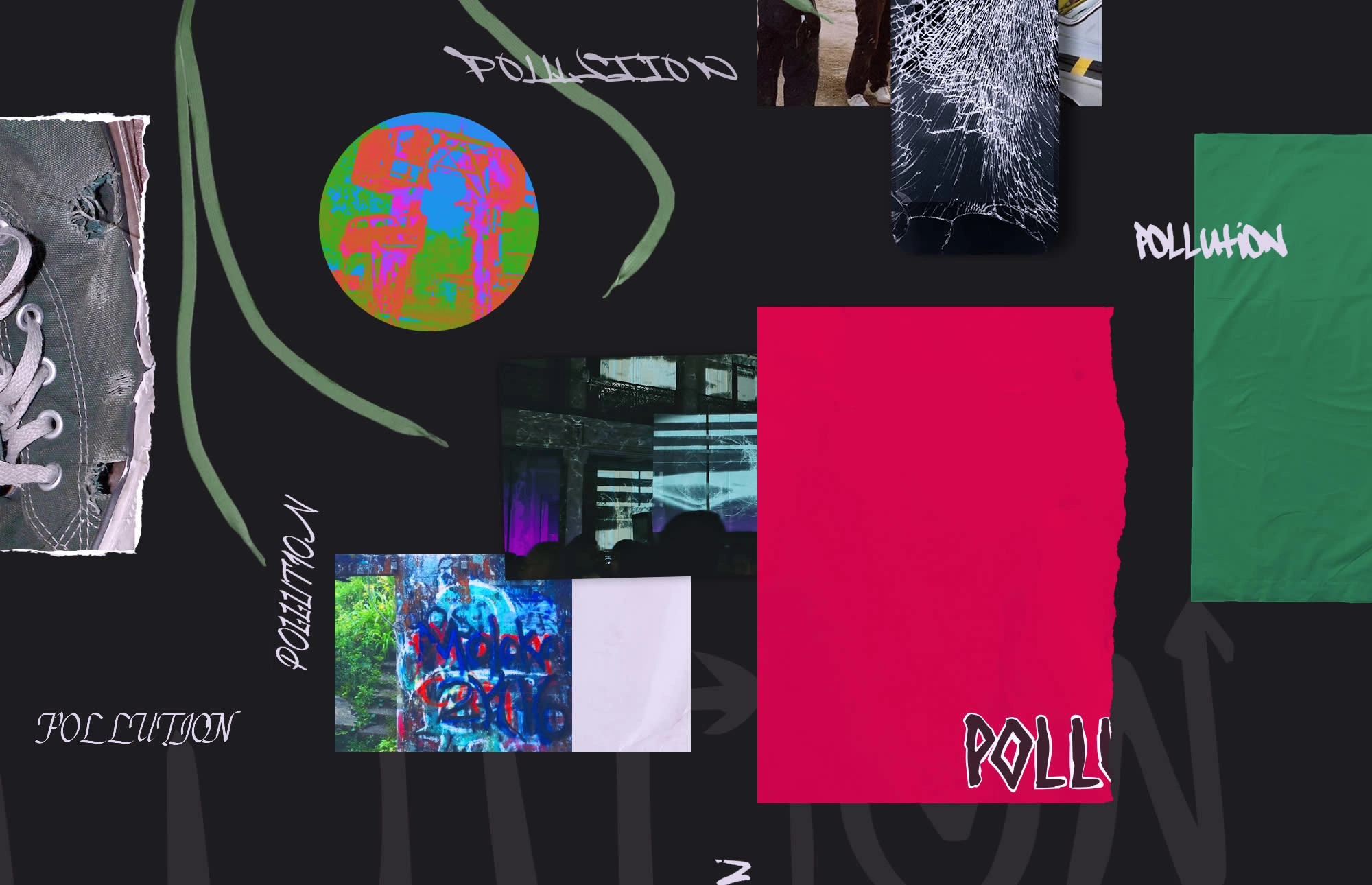 Pollution should incorporate an anti-establishment, punk rock, street-apparel brand, with reference of globally polluted environment.