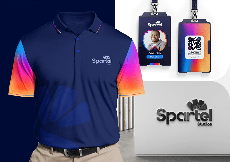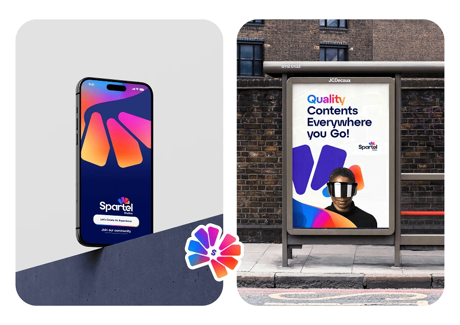 Crafted Spartel Studio’s bold broadcast brand: non-stop content inspired logo, electric blue/red, clean sans-serif. Elevated engagement & industry presence! 🎥✨